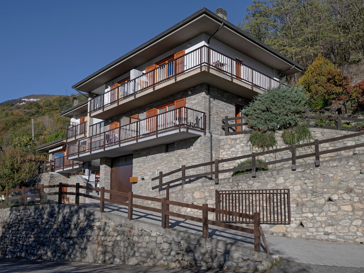5 minutes from the center of Aosta and from the motorway toll booth, at the beginning of the Gran San Bernardo Valley Strategic location for access to ski facilities and mountain walks and visit castles. Playground 100 meters away. Apartment in a single house for 5 people with kitchen, 2 bedrooms, bathroom and living room with sofa bed. Green area of relevance, Private parking and garage for ski, bike and motorbike storage. Food and bank at 300 meters. Bus stop 50 meters away.