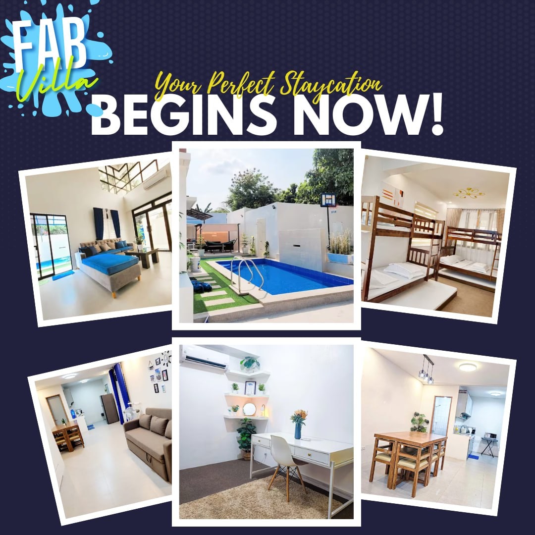 Experience a luxurious 5-bedroom villa that can comfortably accommodate up to 20 guests — your private 5-star retreat with the comfort of home. Each room features hotel-style beds and fresh linens. Enjoy two pools (adult & kiddie), a basketball court, patio, full kitchen, videoke, and fast Wi-Fi. Spacious and modern — perfect for families, friends, or business groups. The perfect place to relax and unwind — peaceful and private, yet just minutes from supermarkets and major shopping centers.