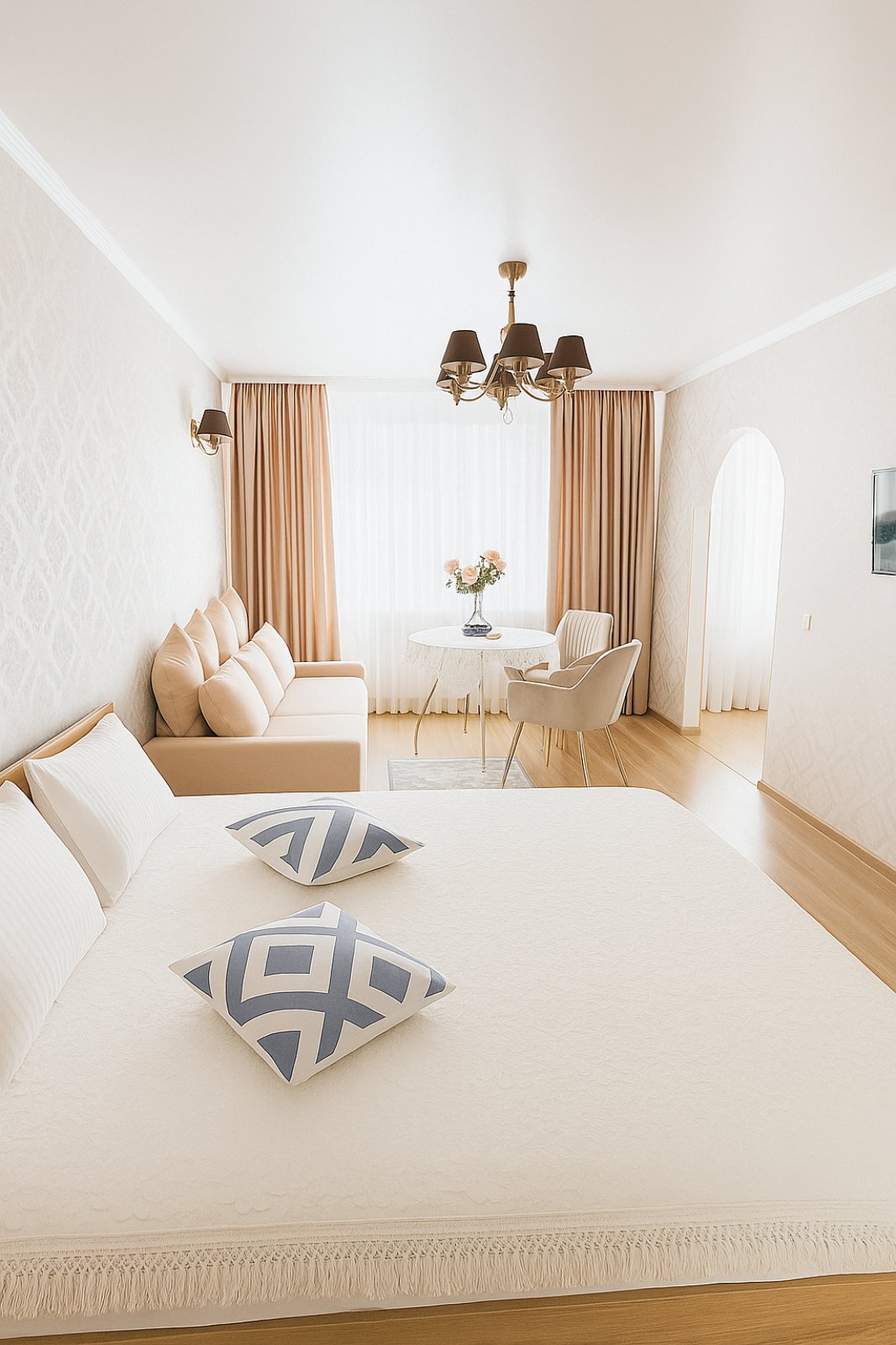 位於利沃夫歷史中心,全新裝修的明亮陽光充足的75平方公尺全套設備的豪華公寓,有2間臥室和一個獨立的休息室,配有美式廚房。公寓安靜,位於溫馨的街區,毗鄰近著名的Staroievreiska街的金玫瑰,傳奇之家,可直接前往步行區,步行僅需2分鐘即可抵達Rynok廣場和所有主要旅遊熱點!公寓有獨立的天然氣中央暖氣、2台空調。