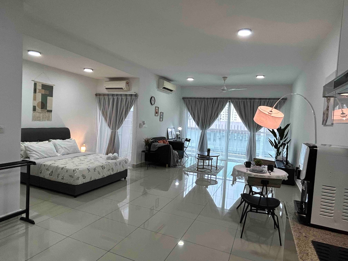 A Modern and Slick 1-Bedroom Studio apartment, nestled amongst greenery in the heart of Ara Damansara. Strategic location with local shops and restaurants just moments away. This stunning fully-furnished studio will surely offer you a sense of comfort, privacy and a quiet, tranquil getaway. Perfect for couples, business travelers or solo adventurers. Short stays/long stays welcomed.