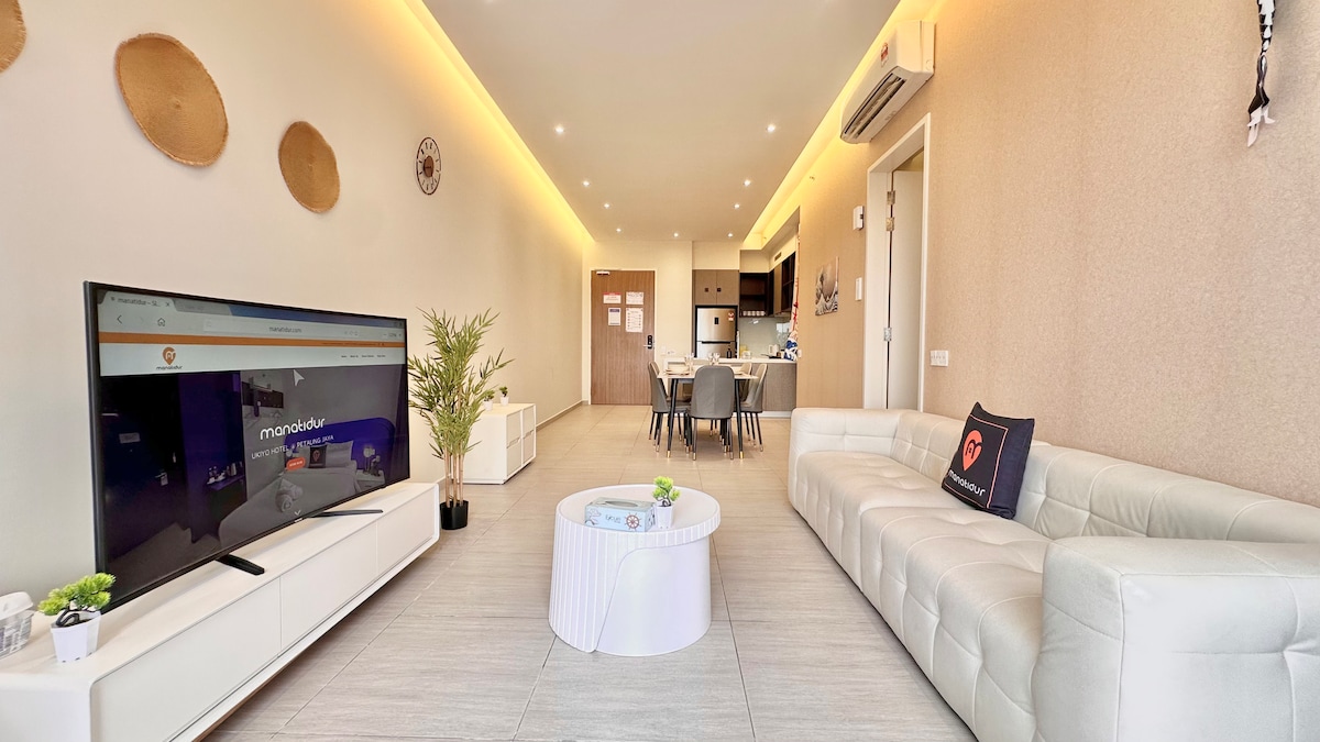 Welcome to our stylish and cozy apartment at The Arcuz, located in the heart of Kelana Jaya, Petaling Jaya. This fully furnished 2-bedroom, 1-bathroom unit comfortably fits up to 5 guests — ideal for families, business travelers, or friends looking for a convenient and relaxing stay.📍 Location Highlights:Just minutes away from Paradigm Mall, Sunway Pyramid, and 1 Utama. Excellent accessibility via LRT, public transport, and major highways, making your stay hassle-free.