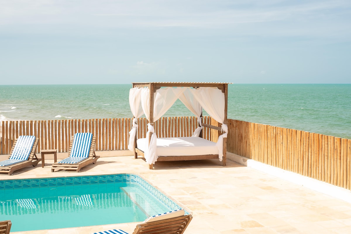 享受這種安靜放鬆的體驗,每一個細節都經過深思熟慮,為您帶來舒適和幸福感。 我們的空間有一個設備齊全且功能齊全的廚房,可供早餐或準備餐點。套房包括一間寬敞的浴室和一間配有標準雙人床、吊床和全景海景的臥室。 亮點是戶外區域,有面向大海的陽臺和專屬按摩浴缸供您使用! 我們將提供海灘服務、躺椅和遮陽傘。