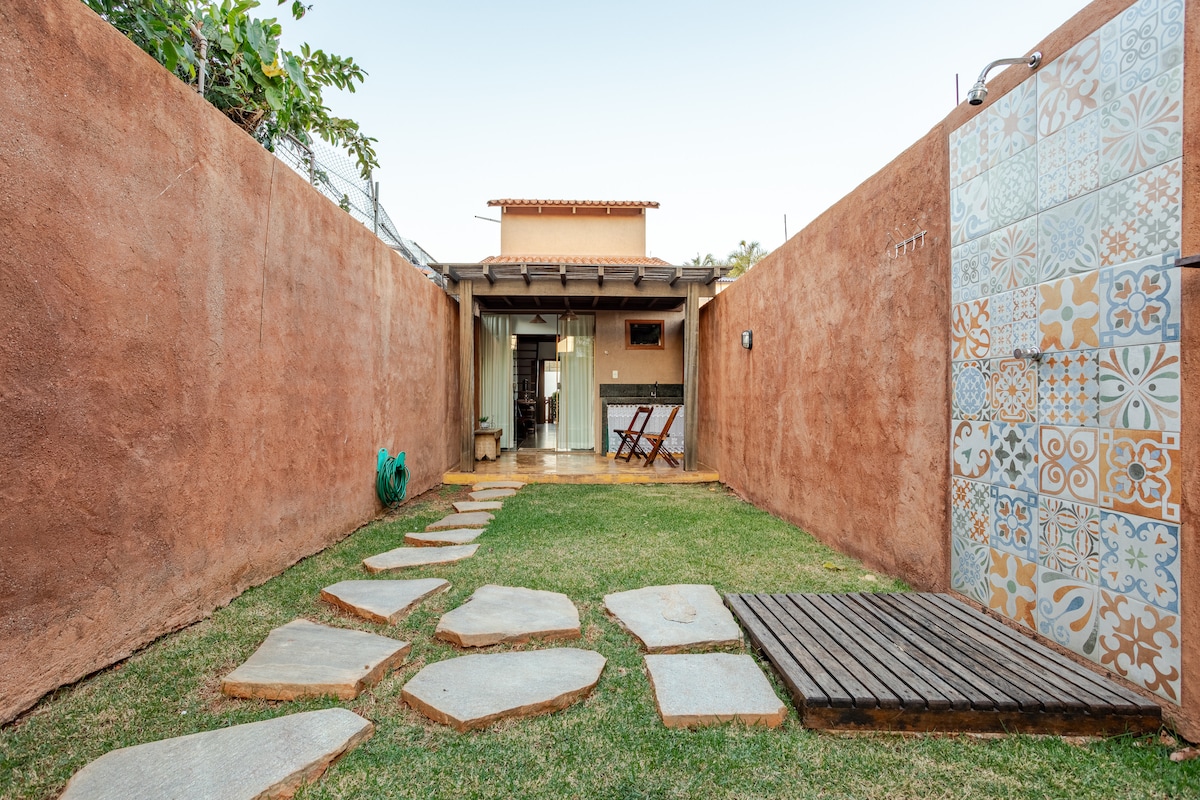 Recanto de sossego, amor, paz e contato com a natureza. Sua cor azul desperta serenidade, harmonia e tranquilidade, simbolizando a água, o céu e o infinito. Situado a apenas 750 metros do Centro Histórico, próximo a cachoeiras, excelentes restaurantes, bares, mercados, museus e igrejas. O Loft é ideal para você que quer curtir um ambiente romântico e aconchegante em Pirenópolis. O Loft oferece um quarto para casal (suíte no mezanino), sala, cozinha completa, 2 banheiros e área externa.