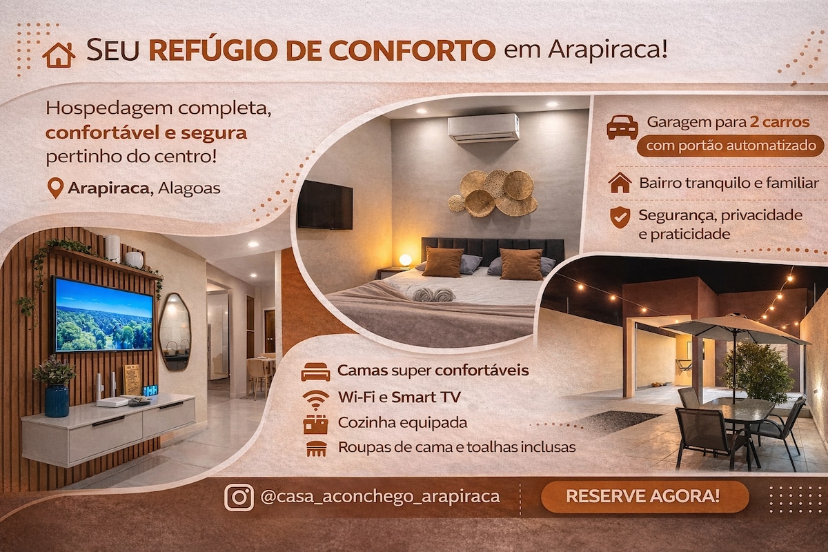 🏡 Casa completa,com garagem,privacidade e segurança! Apenas 5 minutos do centro e shopping l Conforto e praticidade para sua estadia. Se você busca conforto, localização privilegiada e tranquilidade,esta é a opção ideal! Nossa casa está localizada em uma rua principal,com fácil acesso a supermercados, farmácias,postos de combustível e muito mais. Perfeita para quem quer estar bem localizado sem abrir mão do sossego Para sua comodidade oferecemos roupas de cama completa, travesseiros, toalhas✨