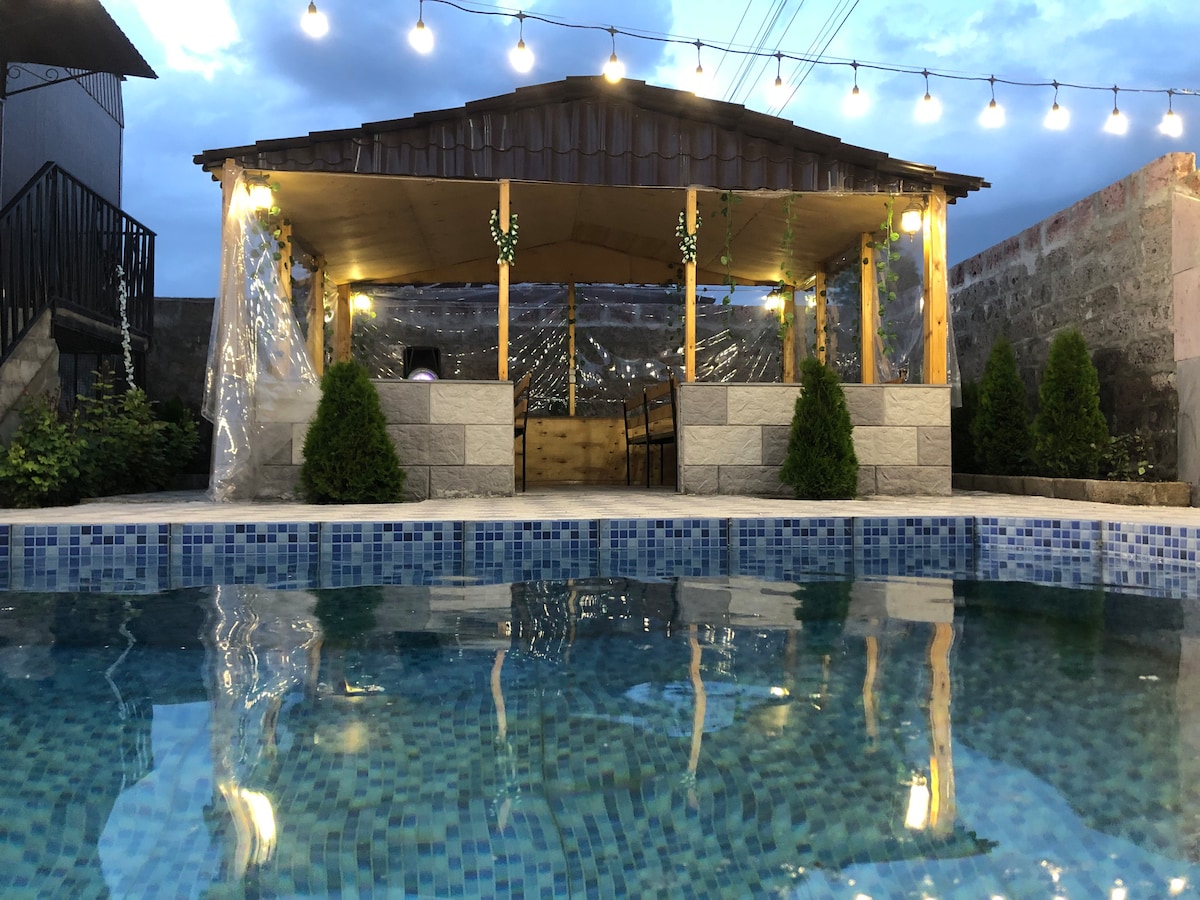House in Garni. There is a swimming pool, a gazebo with barbecue and everything you need for a great stay! Stylish design of backyard and House itself.