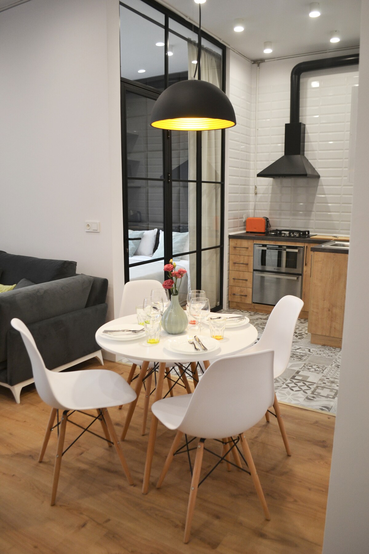 入住這間位處中心地段的單間公寓,可入住 4 位房客,享受這裡的時尚體驗。地理位置極佳,方便您長途或短途旅行所需的一切。客廳和用餐區配有沙發床、廚房配有電器,包括微波爐和咖啡機、配有雙人床的臥室、浴室和陽臺。 您的健康是我們的首要任務。我們的房源遵循深度清潔規則,並採用專業清潔策略消毒。 祝你住宿愉快!