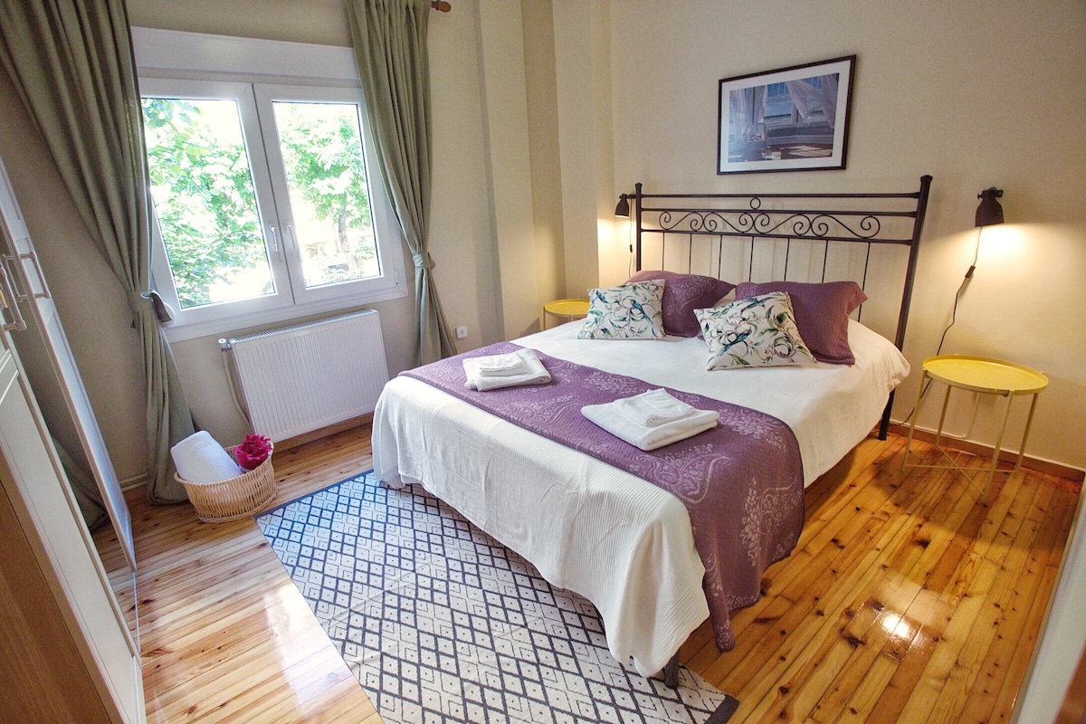 -位於塞薩洛尼基市中心的Mitropoleos街,步行2分鐘即可抵達您需要的一切。 -輕鬆前往所有主要交通工具(計程車、巴士) -用於暖氣/冷氣的逆變器空調 -飯店風格的衛浴 -高品質的床墊、枕頭和床單 - 熨斗/燙衣板 -房間遮光窗簾和百葉窗 -儘管坐落在市中心,但此處有足夠的隔音效果,可以隔絕外部噪音 -非常適合情侶、獨行旅客、朋友和家庭入住