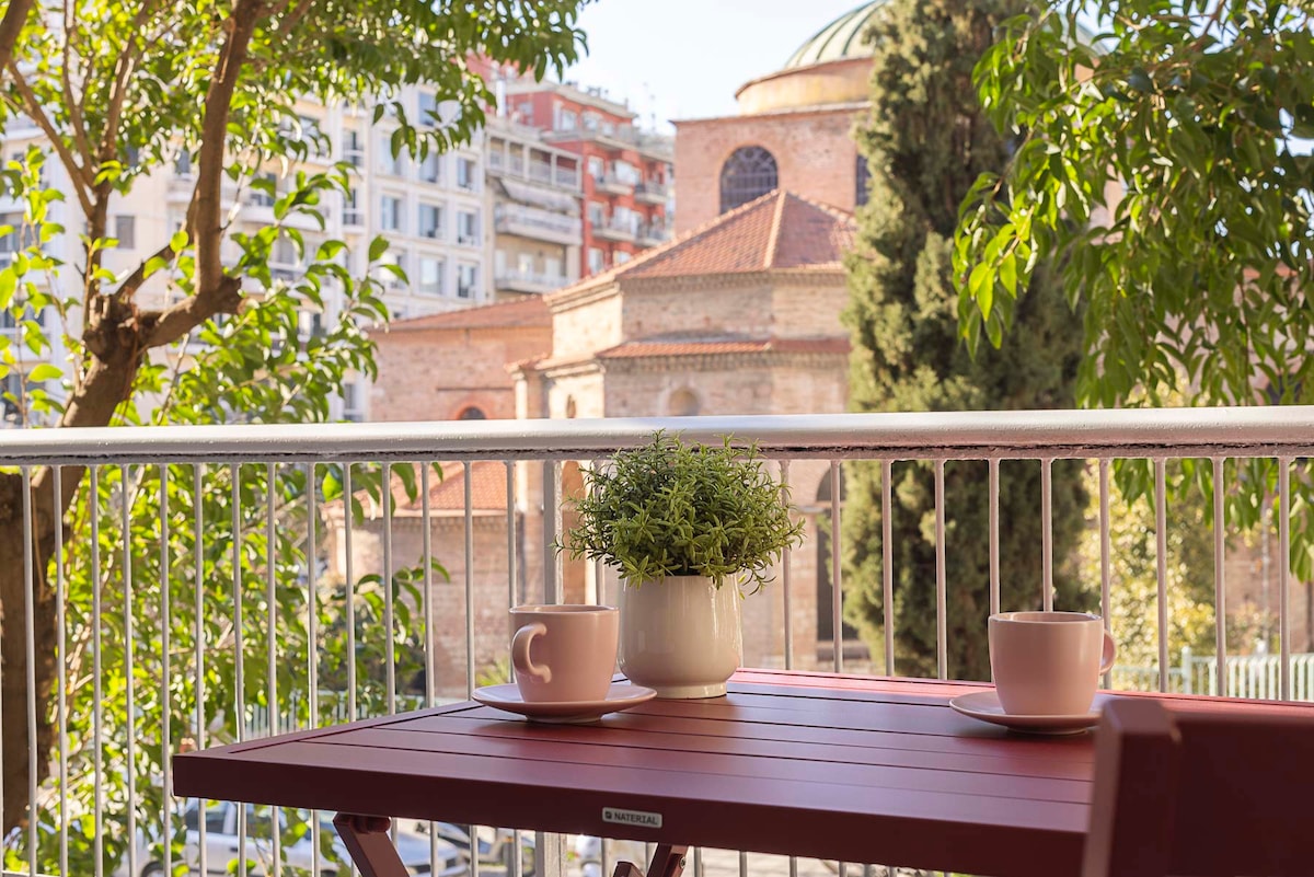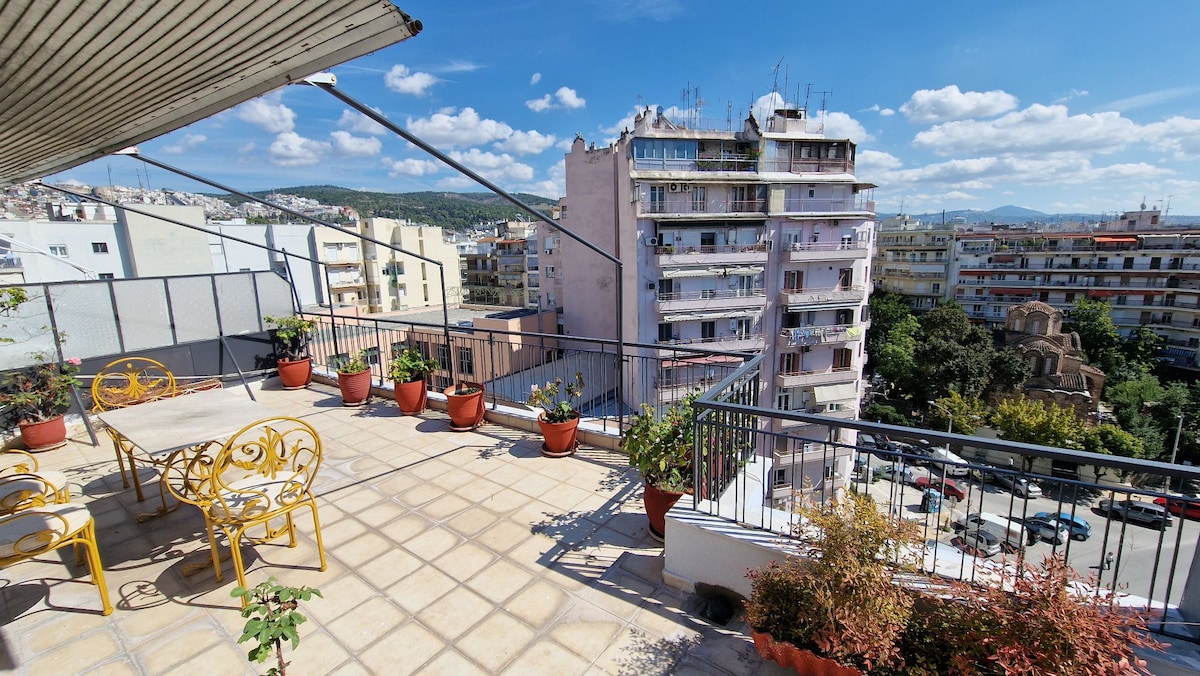 獨特的1間臥室設備齊全的公寓,位於2020年翻修的建築的七樓,配有令人驚嘆的露臺陽臺。 高速網路、優質設備、豪華的1.8公尺寬雙人牀和您自己的Netflix帳號是我們為您提供的一些東西。 明亮、寬敞,配備您在塞薩洛尼基社交生活中心享受住宿所需的一切,距離Aristotelous廣場僅5分鐘路程,距離海邊僅2分鐘路程。歡迎您,祝您住宿愉快!