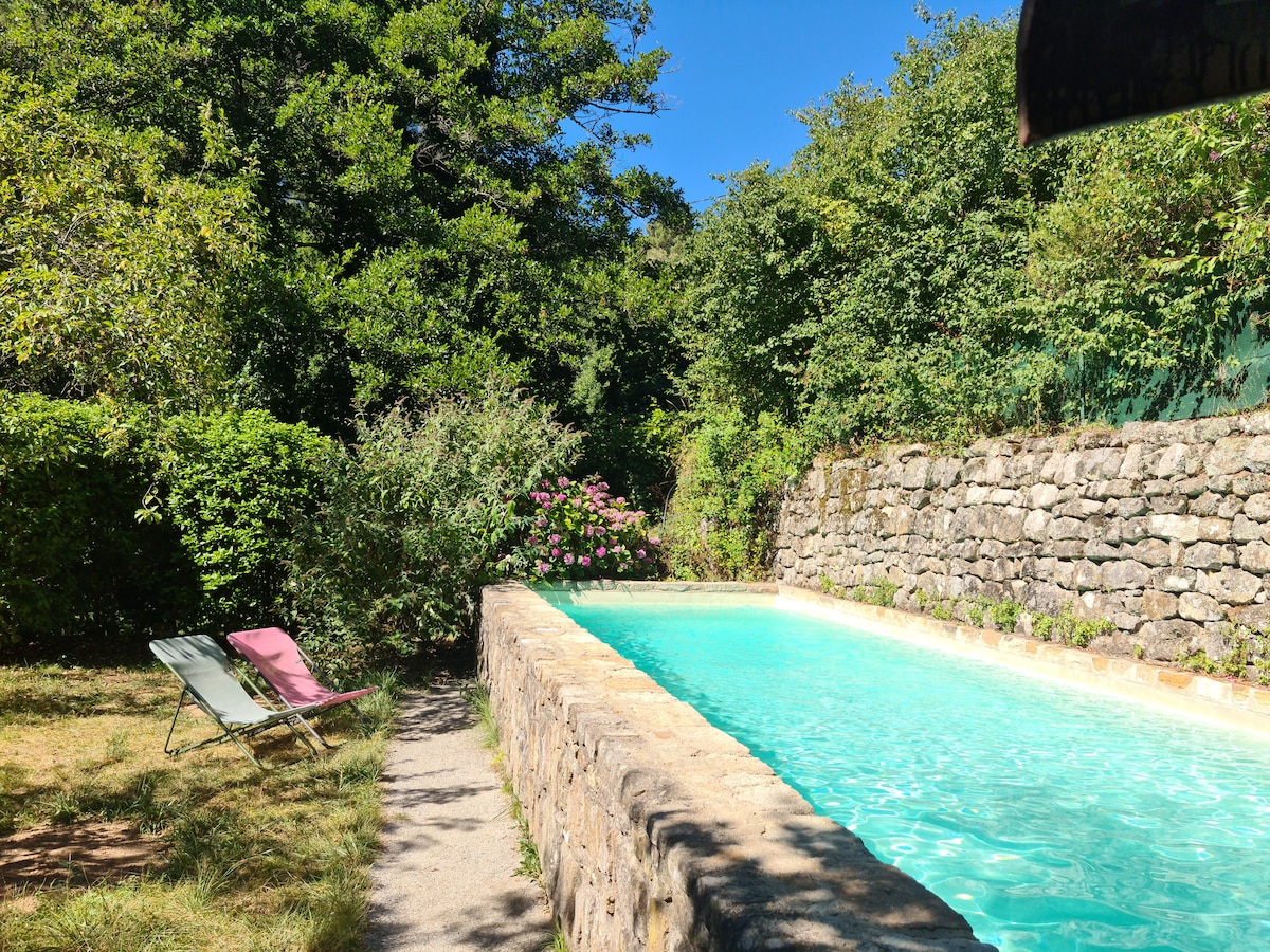 完美的浪漫假期,讓您充電、徒步旅行、放鬆身心...... Les Vans村距離餐廳和商店僅10分鐘路程。 高品質的床上用品、WiFi、設備齊全的廚房、帶電視的客廳... 抵達後,您會發現床鋪和您需要立即安頓的一切:油、咖啡、糖、肥皂、衛生紙... 泳池是為您預留的,四周綠意盎然,提供完全的私隱! 6月1日至10月1日開放