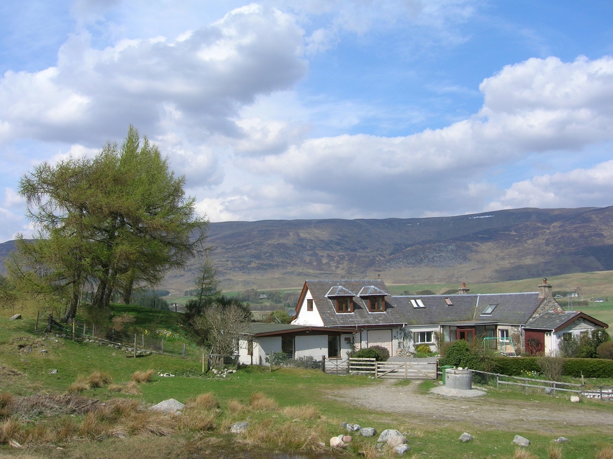 這是一個緊湊、舒適、獨立的臥室,與舊的cruck穀倉相連。它位於庭院的一側,有獨立的鑰匙通道,讓您可以隨意進出。 如果您喜歡戶外活動,我們認為您會喜歡這裡。我們可以欣賞到凱恩戈姆山的壯麗景色,從門口步行即可抵達。房間質樸,充滿特色,配有舒適的加大雙人床和配有淋浴間的套房浴室。如果您需要現代化設施或大量空間,這裡可能不適合您!