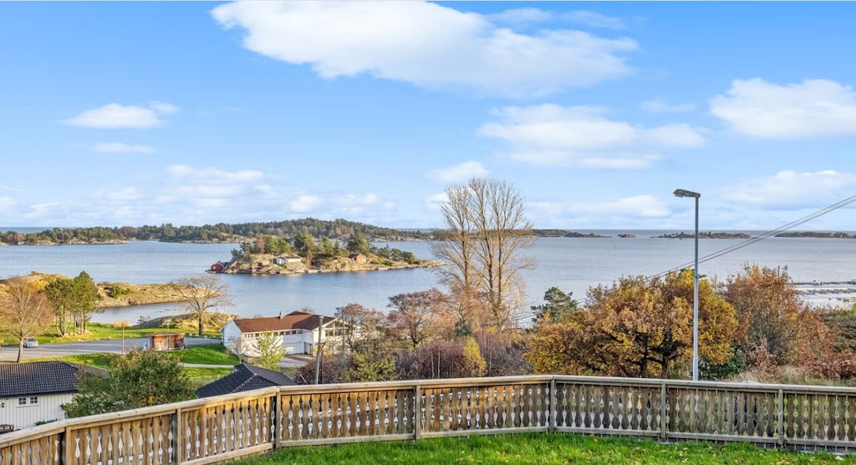 俯瞰Eydehavn的夢幻獨立屋,4間睡房、溫水泳池、電動車充電器、2個泊位和2個戶外客廳。 巴士在旅居下方,只需15分鐘即可抵達Arendal。 這間獨立屋最近經過翻新,新圖片不斷更新。害羞,沒有景觀。 來自HTH的大型新廚房,配有兩個洗碗機、咖啡機、碳酸和煮沸的水,來自水龍頭、廚房島,配有來自Røroshetta的盤子頂部、酒櫃、大型餐桌( 8-10人)。烤箱+組合。 可容納8人,可根據需要提供額外床位。