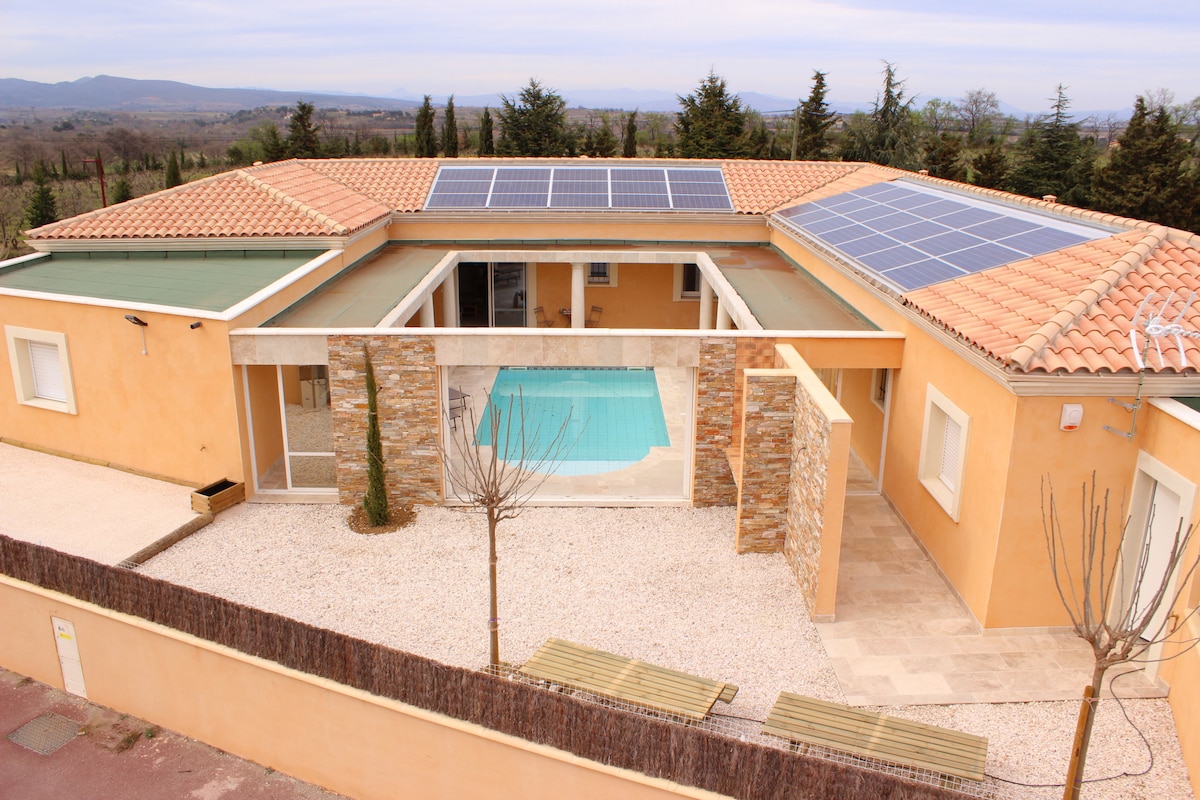 配備私人室外泳池的度假別墅 提供涼亭和夏季廚房( BBQ plancha ) ,保證放鬆身心 房源有3間臥室( 160公分2張牀和1張敞篷沙發)、2間浴室、2間廁所、廚房、健身房和40平方公尺的客廳 抵達時,我們會整理牀鋪,並免費提供毛巾 我們接受攜帶寵物
