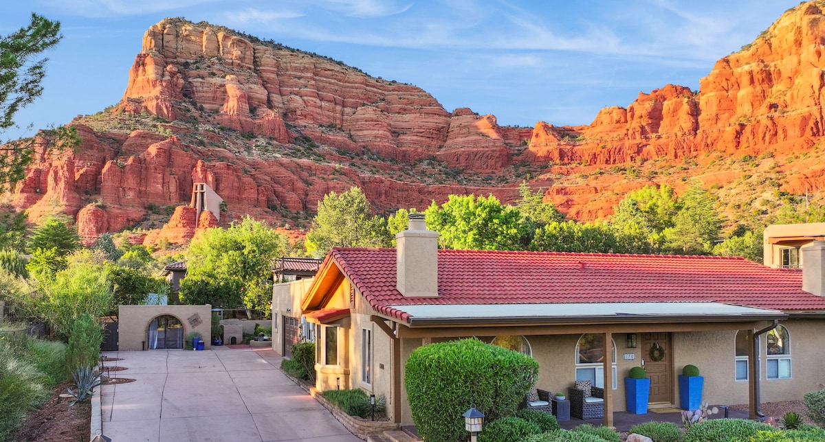 獨一無二的奢華位置。 這是塞多納的前排。 這棟房子毗鄰國家森林,可直接欣賞著名的鐘巖、宮殿、大教堂巖石等景觀。 感覺就像是在度假村或避難所。 這是遠離繁忙日常生活的終極寧靜度假勝地,也是娛樂和放鬆愛人的完美住所。 您將在這棟房子裡享受真正而特別的塞多納體驗。 完美的浪漫度假屋,有自己的私人泳池,適合情侶或朋友入住。