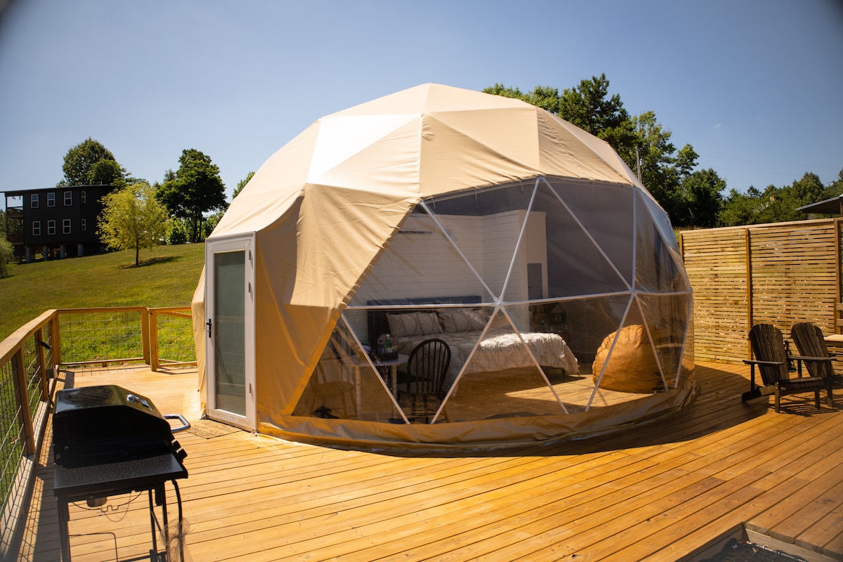 這次獨一無二的豪華露營之旅,探險與奢華相遇,如417雜誌的封面所示! 所有最好的自然,與高檔飯店房間的奢華相結合! 在100%氣候控制的圓頂屋中,您可以舒適地仰望星空,或欣賞綿延的森林。 在室內按摩浴缸中泡澡,或在露臺上烹飪。 在內置吊牀上喝雞尾酒。15分鐘即可抵達尤裏卡斯普林斯市中心。 8分鐘即可抵達海狸湖/Big Clifty遊泳通道!