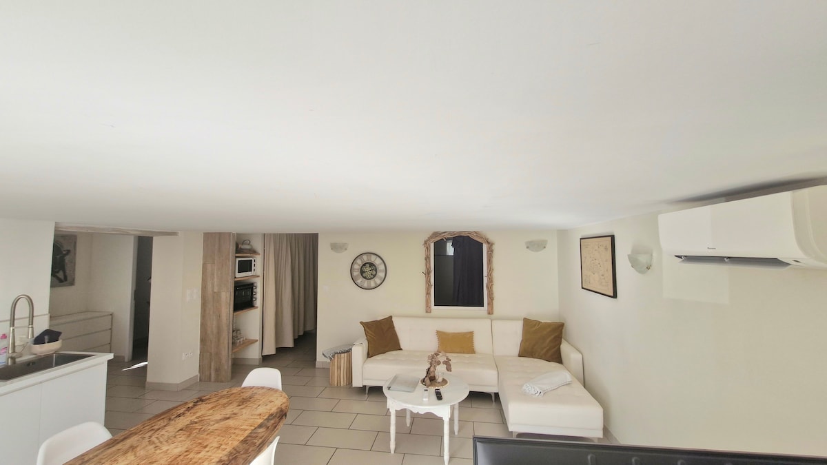 邀請您入住位於阿爾勒超級中心附近的可愛單間公寓。 它位於安全住宅的二樓(沒有電梯)。 空調、舒適和明亮。 步行10分鐘即可抵達超市中心,開車5分鐘即可抵達主要道路( Aix-Marseille、Nîmes-Montpellier、Avignon )。 如果您開車來,您可以將車停在住宅的私人停車場。 距離單間公寓5分鐘路程,有一家小型超市和各種商店!