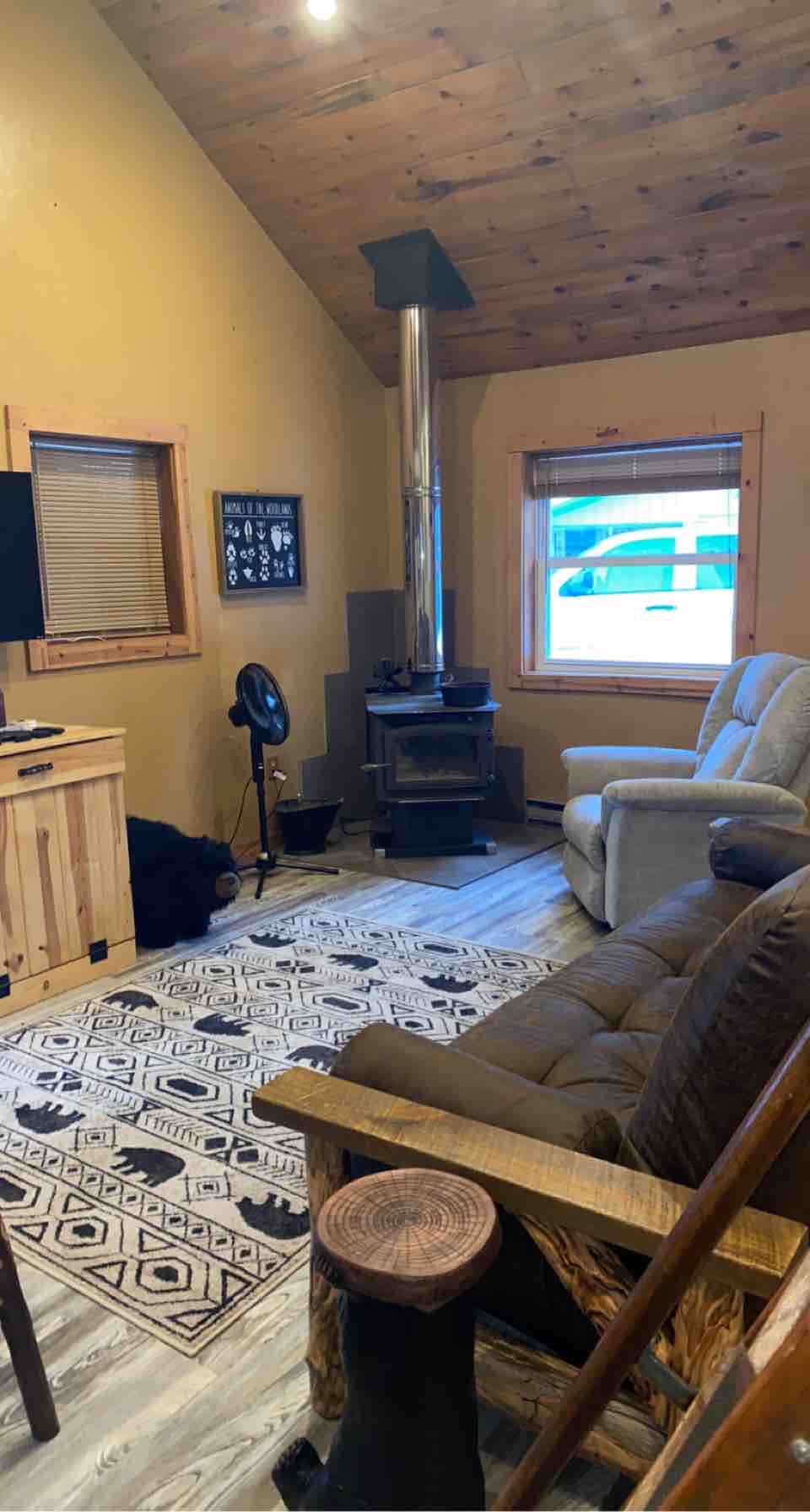歡迎來到Evergreen Escape ! 位於諾斯伍茲( Northwoods )的寧靜環境,四周環繞著自然美景。 在俯瞰森林的遮蔽露臺上享用早晨的咖啡,或在燃木爐壁爐旁放鬆身心。 在我們全新的私人桑拿房放鬆身心,恢復活力。 可通往全地形車和雪地摩託小徑、附近的白水漂流和徒步旅行,四季都有無盡的休閒活動! 在這個神奇地方的寧靜中放鬆身心,留意美麗的野生動物!