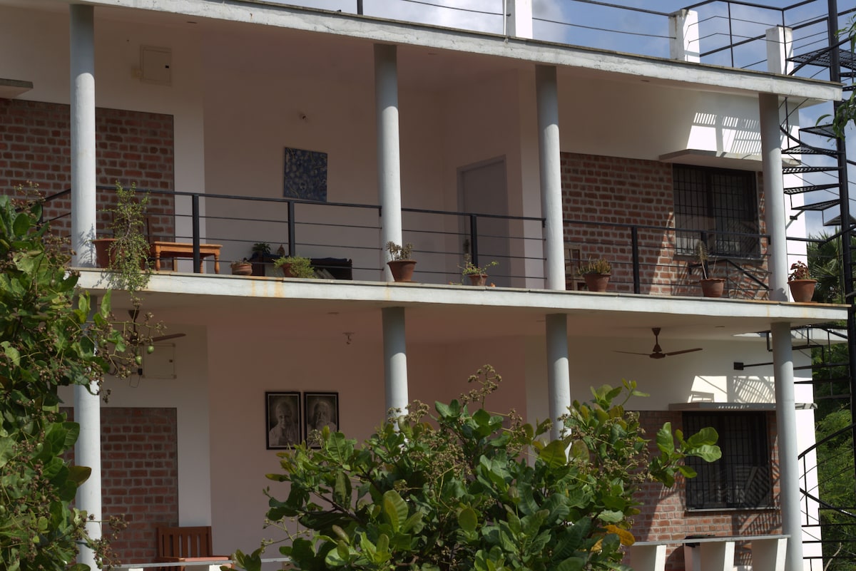 Aloha @ Sagha農舍坐落在郁郁葱葱的奧羅維爾綠化帶的邊緣,是一個寧靜的天堂,擁有所有必要的舒適。這間農場距離Matrimandir 1.5公里,距離Svaram音樂中心500公尺,提供寬敞美觀的空調房間、陽臺、廚房、冰箱、洗衣機、逆變器和太陽能加熱器。我們提供衝浪板、撲浪板和自行車出租、當地導覽/夜生活、無人機拍攝和前往附近旅遊景點的計程車/節奏服務。