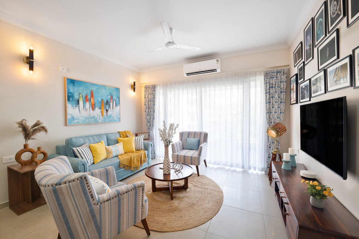 JenVin Luxury Homes歡迎您入住我們時尚、現代化、家具齊全的兩房公寓,面積約1500平方英尺,位於Baga North Goa。 這間寧靜的公寓設有寬敞的公寓,擁有俯瞰花園的巨大陽台,靠近所有充滿活力的熱門景點,但卻是一個隱藏的寶石,提供寧靜和舒適。 距離巴加海灘(Baga Beach)不到1公里,距離安朱納(Anjuna)、瓦加托(Vagator)、卡蘭古特(Calangute)和坎多林(Candolim)等熱門海灘僅10–20分鐘車程,提供果阿邦活力和放鬆的理想組合。