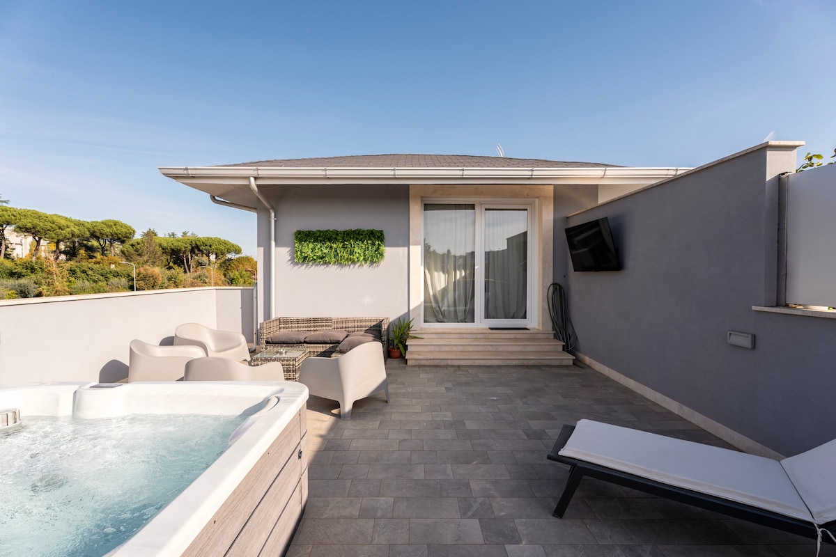 罗马附近的顶层公寓 [私人按摩浴缸] 2 个停车位