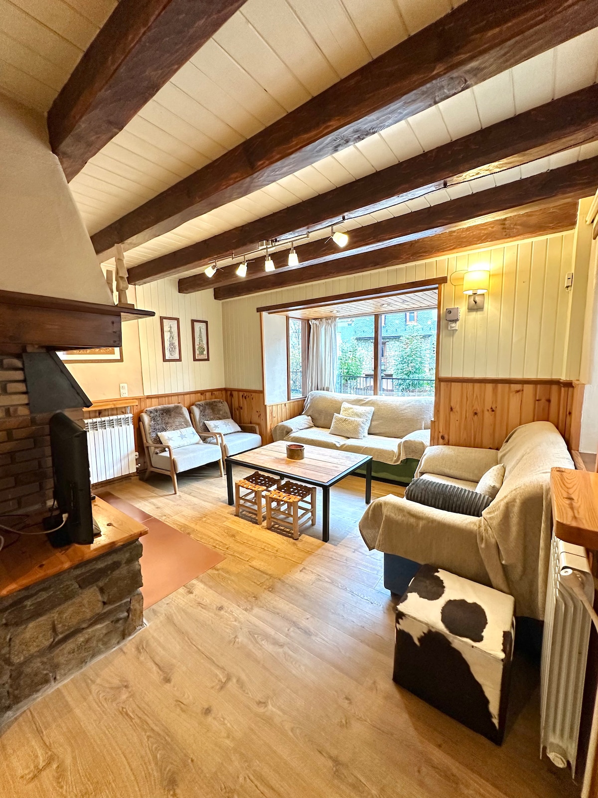 ERA CABANA is located in the "Urbanization ERA CUMA" of Salardú, 5 minutes drive from the Baqueira-Beret ski resort. It is a special house, bright and with dream views. With capacity up to 8 people, with 3 bedrooms and 2 bathrooms, it is distributed over three floors. Ground floor consists of 2 rooms; one of them with three bunk beds of design one of them of 1.35 for 2 people and another one with double bed and shared bathroom.