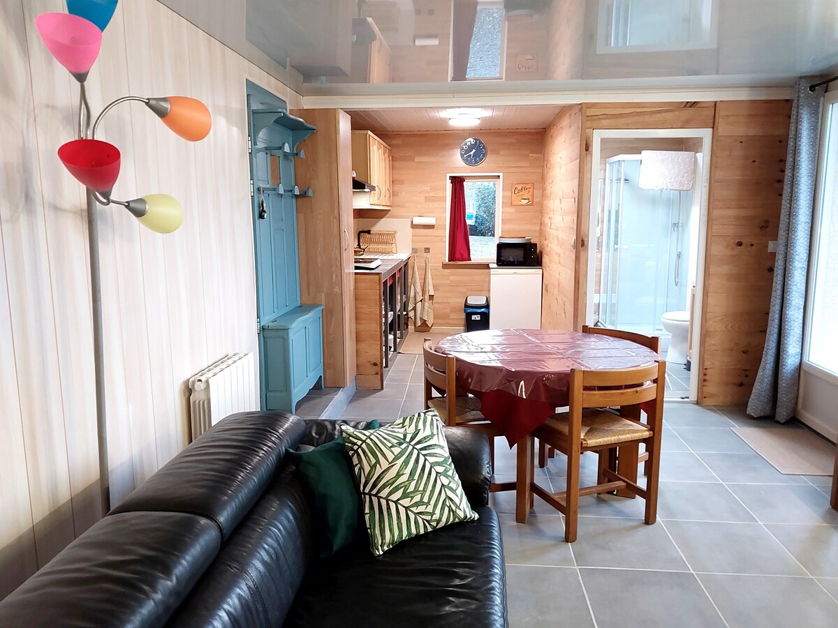 🌿 好好獎勵自己,在大自然的懷抱中放鬆身心。 想暫時遠離煩囂、放慢腳步,享受平靜時刻嗎? 歡迎來到這間木屋,它坐落在綠意盎然的環境中,可欣賞到令人心情舒暢的美景。 在這裡,時間彷彿停滯不前:在露天平台享用早餐、在陽光下放鬆身心、溫馨的夜晚……一切都讓你盡情放鬆。 非常適合情侶、小家庭或 4 位成人入住,可享受安靜的住宿體驗,並靠近該地區的主要景點和活動。