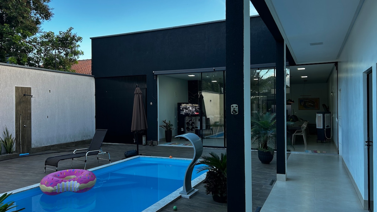 Aruanã的大房子。 位於新論壇前面,距離阿拉瓜亞河和紅河600公尺。 距離市中心廣場1公裏。 它有4間套房、休閒區域、帶LED照明的溫水泳池、瀑布和熱水浴缸。 美食區域,配有燒烤和炊具、男女社交浴室、完整廚房、配備洗衣機的服務區域和4輛車的車庫。 整棟房子都有WiFi , 60吋電視,可收看訂閱頻道。適合寵物入住。