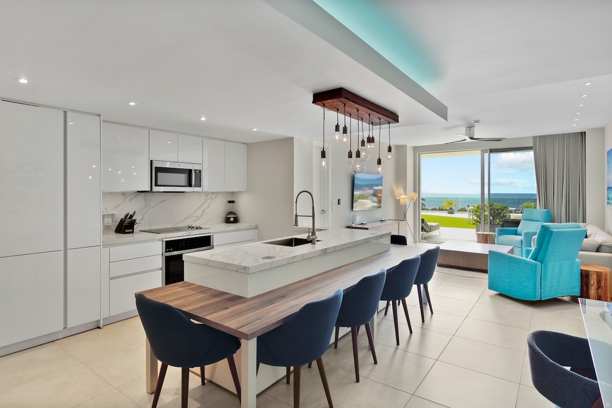 A beautiful new three-suite oceanfront condo in the upscale luxury O Condominium, the highest-specification residential building in Aruba. Its remarkable beachfront location is directly on Eagle Beach, voted #1 in the Caribbean. Adventure throughout Aruba, then retreat to the lovely condo whose lux design will leave you in awe. ✔ 3 Comfy BRs ✔ On Eagle Beach #1 in Caribbean ✔ Full Kitchen ✔ Smart TVs ✔ High-Speed Wi-Fi ✔ Residence Amenities (Pool, Gym, BBQ, Pkg) ✔ 2,800 sq feet See more below