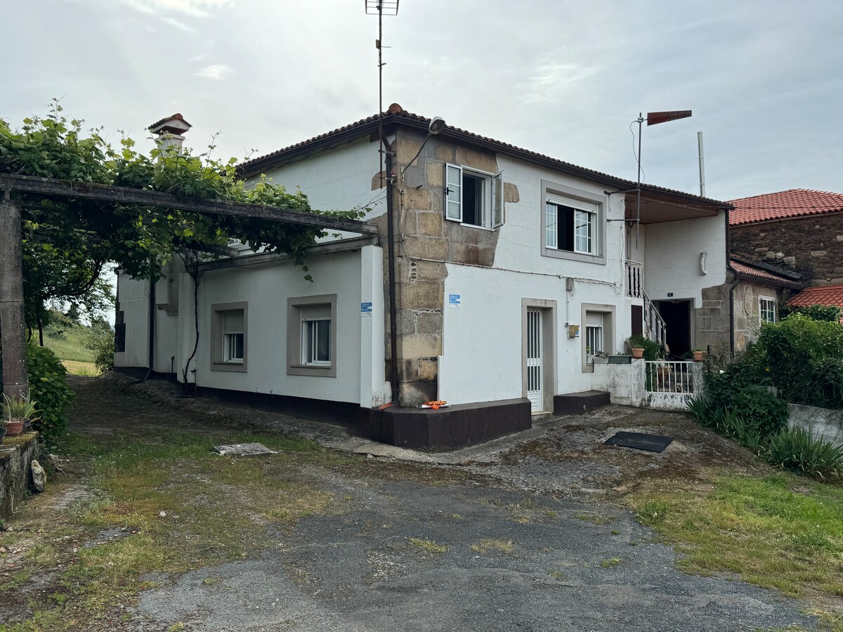 一樓房屋,距離聖地亞哥10分鐘(開車) ,距離海灘20分鐘,位於自然安靜的環境中,距離AG-56聖地亞哥-布里昂高速公路僅1公里,可輕鬆前往加利西亞的旅遊區,以及該地區的超市和餐廳服務。 它有3間臥室、2間浴室、一間廚房客廳、一個玻璃露台、一個有蓋燒烤和一個花園,配備了床上用品、毛巾、廚房用具和WiFi ( 600 MB )。