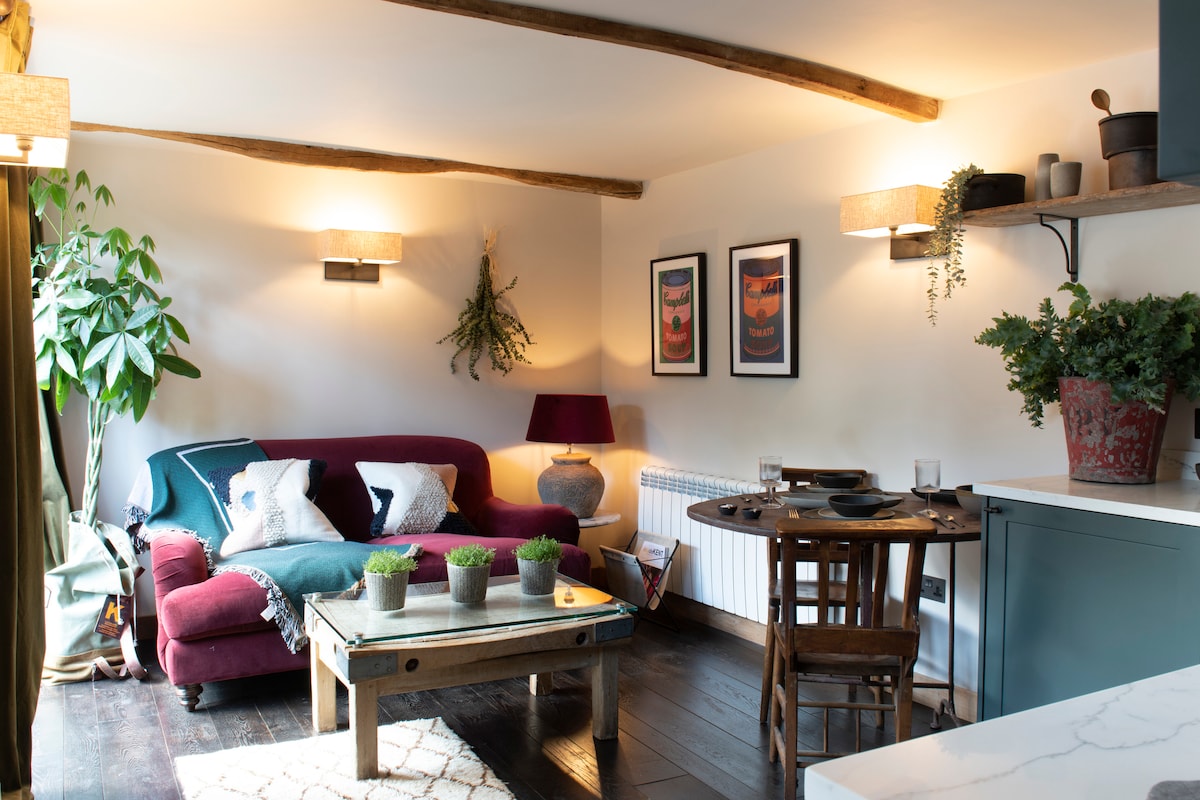 一流的轉換了一個小型火石和磚車棚,旁邊是一個修復精美的300年橡木穀倉。 這裡也很私密,有自己的小庭院花園、五彩繽紛的邊界、赤陶鍋、柚木桌子和椅子–在戶外享用早餐,捕捉晨光。 內部一切都是清新、明亮、明亮和舒適的。 美麗的橡木地板在腳下很烤,有粗糙的橫樑、厚厚的布料、白色沙發、庭院外的法式門和一堆書籍。 臥室配有精美的油漆牀,充分利用了這個空間,因此您可以安頓下來,提供最好的牀單、羽絨和羽絨被、花園的景觀,以及最先進的全瓷磚步入式淋浴間。 如果您住宿一週,寬敞的迎賓籃包括一瓶葡萄酒,平面電視配有DVD ,一個角落有一個設備齊全的廚房,隔壁有親切的主人,如果您需要,可以提供歐陸式早餐或晚餐;情侶會生根。 步行穿過樹林和小徑,讓您更具冒險精神,坎特伯雷法弗舍姆( Canterbury Faversham )和惠特斯特布爾( Whitstable )就在附近。 附近的阿什福德( Ashford )有前往倫敦的高速列車連接,距離倫敦僅38英裏。迷人。