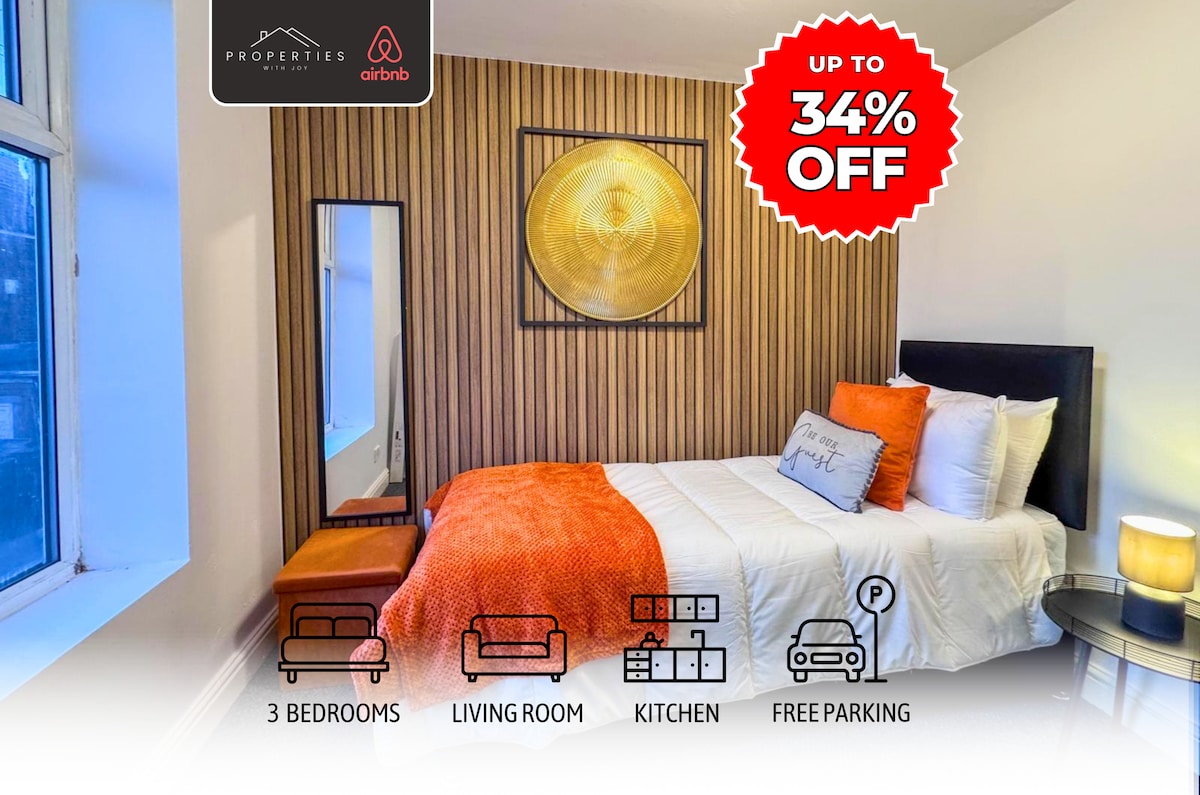 🌐Properties With Joy Short Lets & Serviced Accommodation Ashton-Under-Lyne 🌐 ↪️ Check our host profile — Guests who take a moment to read through often find additional ways to save and get the most out of their stay. 🗝 3 Bedroom House 🗝 Sleeps up to 7 Guests 🗝 Bedroom 1 - 2 x Double Bed 🗝 Bedroom 2 - 1 x Single Bed 🗝 Bedroom 3 - 1 x Double bed 🗝 Free On Street parking 🗝 Fully Equipped Kitchen 🗝 Free WiFi