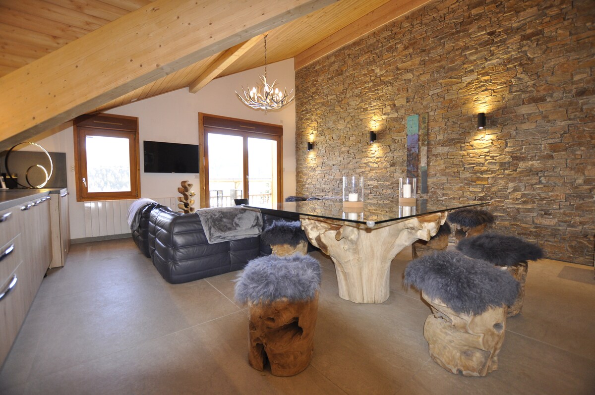 卡米耶小屋 (Le Chalet de Camille) 由 2 間公寓組成,位於安塞勒 (Ancelle,這是一個小型度假村,地理位置優越,適合參觀該地區,靠近埃克蘭公園 (Parc des Ecrins),距離加普 (Gap) 15 分鐘,距離塞爾蓬 (Serre-Ponçon) 30 分鐘。 提供的住宿位於樓上,包括一個設備齊全的廚房、開放式客廳、2 間臥室、1 間浴室和 1 個露臺。您可以使用公共花園,花園內設有休閒區,提供躺椅和兒童遊戲。您可以使用烤肉架。