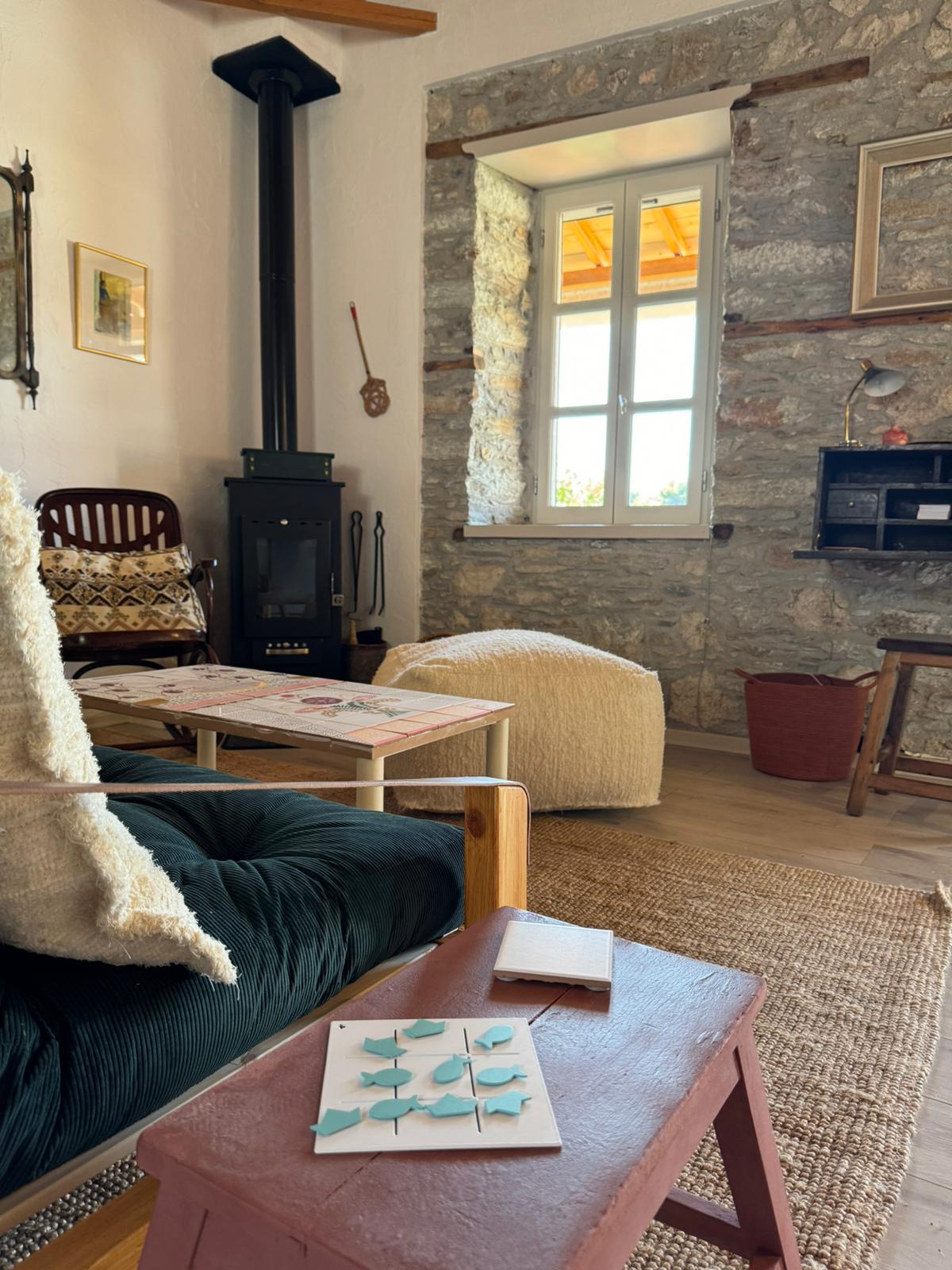 cherry's home is a traditional old house completely renovated in the center of the small traditional village of Glossa. From the house on foot and at a very short distance there are shops such as cafes, restaurants and bars, a supermarket, a bakery and a pharmacy. The living room and its balconies offer unobstructed views of the Sea. It is modernly decorated with all the comforts and electrical appliances. Also in the kitchen equipment there is an espresso machine.