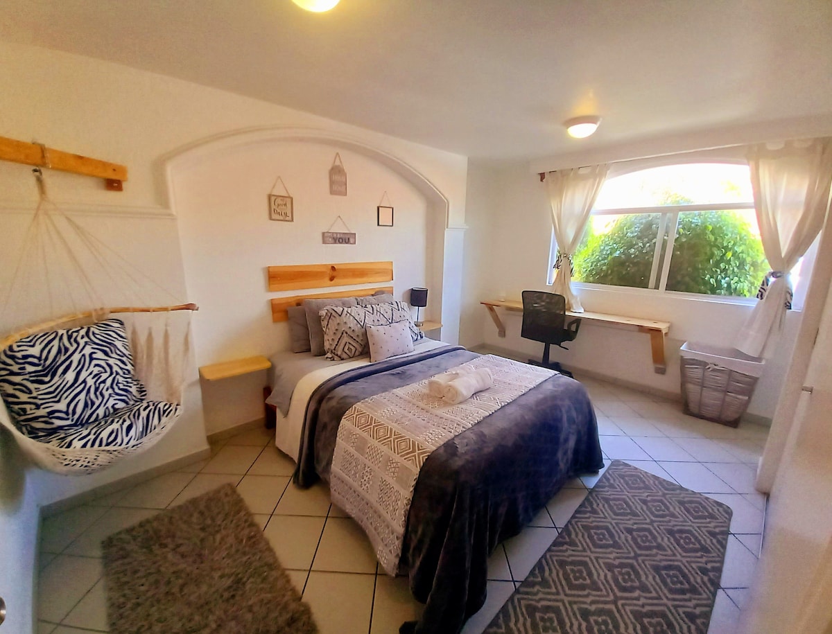 舒適的房間,配有套房浴室、家具齊全的公寓、廚房、飯廳。 所有家具和設備齊全。 房間配備您所需的一切:寬敞的衣櫃、吹風機、Servibar、配備ROKU的LED螢幕、迷你工作站Montable和可拆卸、WiFi、配備電動門的私人停車場、您的舒適和隱私是我們的首要任務。