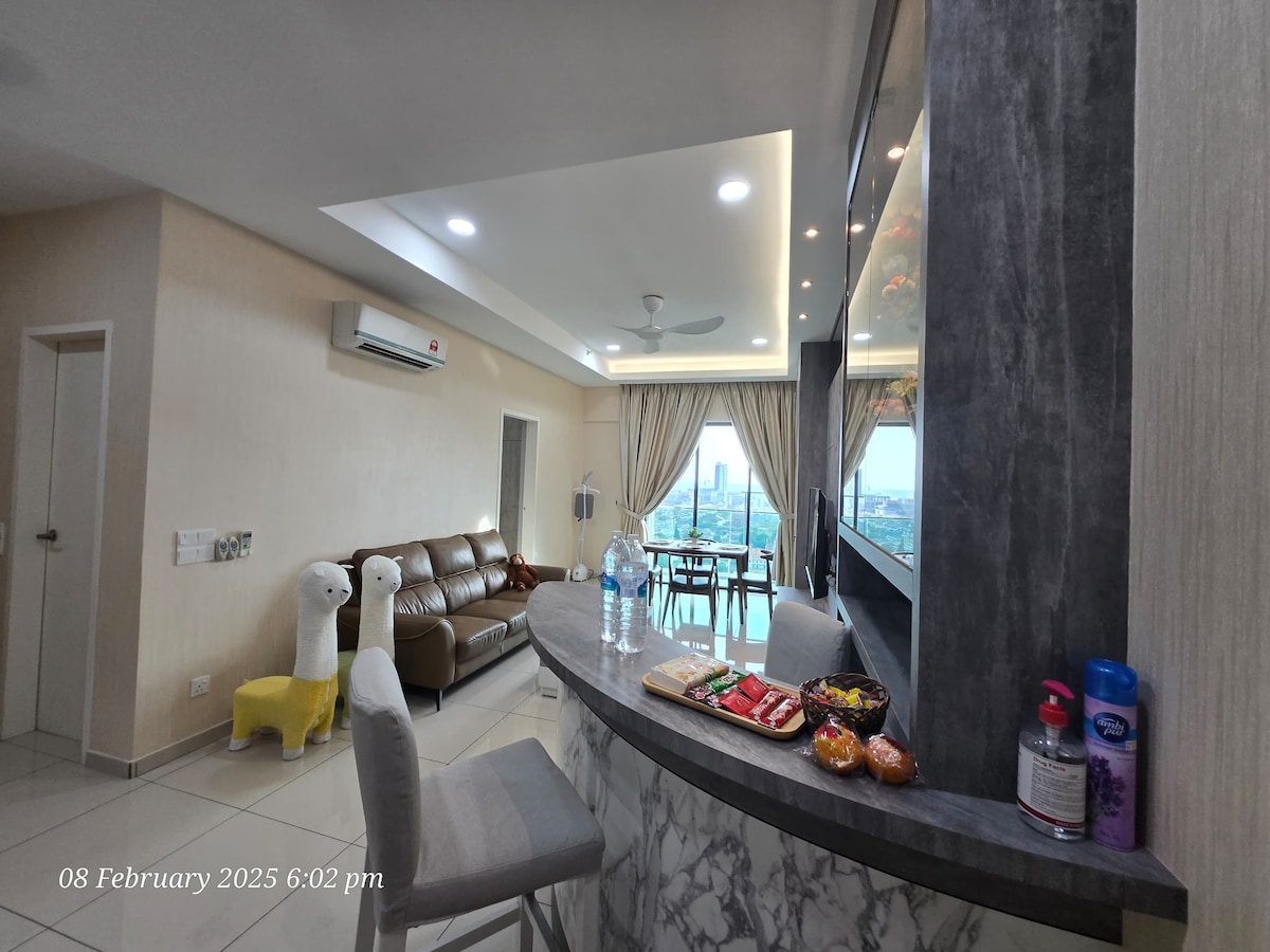 Ong kim wee Residences位於馬六甲市中心,地理位置優越,當地社區融合在一起。 這是一間豪華公寓,設有5星級設施,是新建的。 它有3間臥室2間洗手間,共有5張牀,如果需要,可舒適地容納6人。 非常適合家庭/朋友甚至情侶入住。 最後但並非最不重要的是,靠近小販中心,食物很好! 祝您入住愉快! * * Friendmaly Staycation by gm * *
