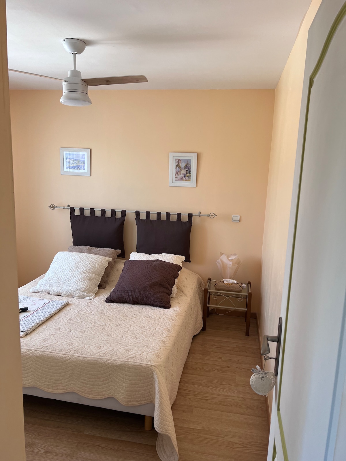 位於村莊中心,距離所有商店 50 米,不受 Mistral 風影響。你將入住一套 50 平方米的公寓,毗鄰房東的住所。公寓包括客廳、廚房、2 間睡房、1 間浴室加廁所(床單和毛巾需自備或應要求租用)。 旅居內設有車位。 可免費使用設有按摩浴缸的花園(春季至 10 月底)。 星期一至星期五下午6:00起辦理入住手續。星期六、日及假日則由下午 3 時起辦理。退房時間為下午2點。