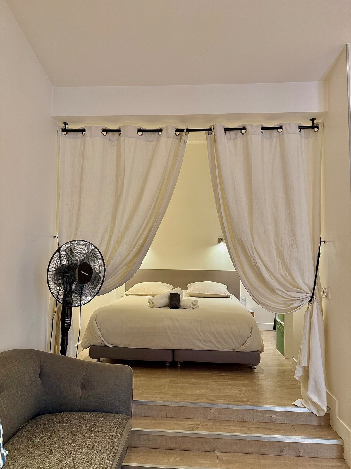 這間公寓位於一座19世紀的大型葡萄酒種植者的房子內(我和我的孩子住在大樓的後面)。 這間住宿非常適合情侶或帶嬰兒的情侶(現場有雨傘床),即使展開沙發短時間可容納4人! 表面積為45平方米,設有6平方米的私人露台。 您可以使用室外和3人按摩浴缸(水療)(4月至10月開放)。 自助入住(鑰匙盒)。