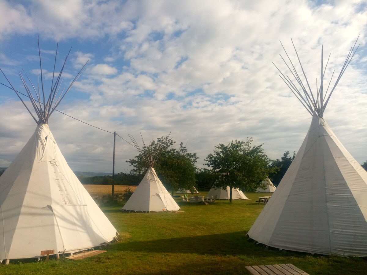 在我們非常舒適的印度印第安印第安印第安印第安印第安印第安印第安帳篷中玩冒險家,配有私人水療中心,提供無限流量和早餐 在Domaine Saint Cerice體驗一個或多個不尋常的印度印第安印第安印第安帳篷之夜,並享受這座遊牧住宅的獨特氣氛,配有非常舒適的牀。 加熱的廁所和淋浴間距離您的印第安帳篷只有幾米。 您可以在住宿前無限制使用的私人水療中心和早餐