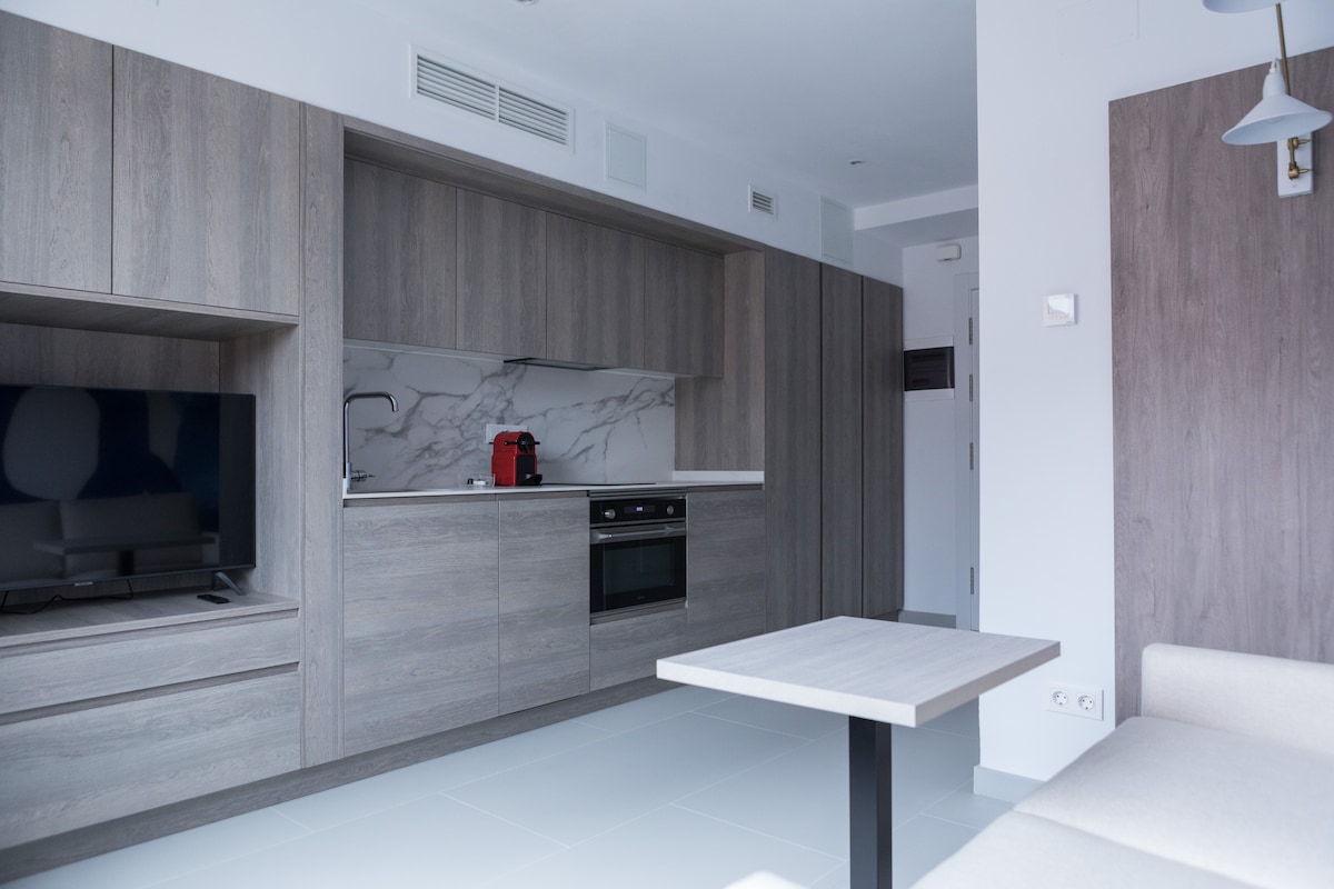 NON-TOURIST ACCOMMODATION, ideal for stays related to work, study-training, medical reasons, family visits or personal needs. Modern, cozy and bright apartment with independent access and high-quality finishes. It features 1 bedroom, a full bathroom and a living-dining area with a fully equipped open-plan kitchen. Located in Chamartín, next to Cuatro Torres, La Paz Hospital and Chamartín Station. Safe, quiet and well-connected area with metro, bus, train and local services just minutes away