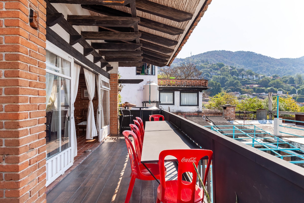 Casa La Macarena, cozy with incredible location and panoramic view. Located in Avándaro Centro, shops and restaurants 5 minutes walking. Ideal for socializing, enjoy a coffee on the terrace watching the sunset, dive into the pool, perfect after going out to explore, running , training , biking, take a sunbathe. (+ Pool boiler ) Go horseback riding, hike, venture out to see the waterfalls, rivers and viewpoints in the area. Live an unforgettable experience surrounded by nature!