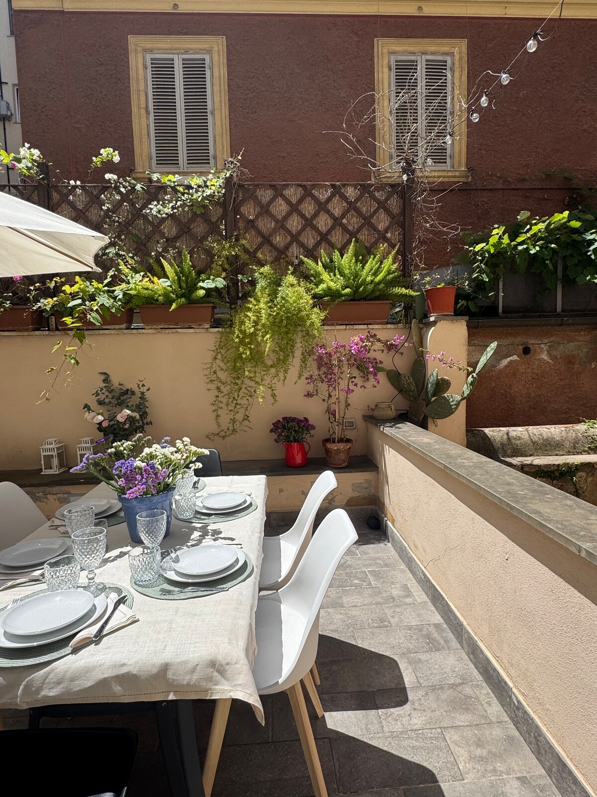 Nel centro storico di Roma, nel caratteristico quartiereTestaccio. Appartamento di recentissima ristrutturazione per 6 persone con wi-fi, aria condizionata, confortevoli materassi ortopedici. E' composto da due camere da letto con smart TV 32 pollici, ciascuna con bagno privato, soggiorno con smart TV 43 pollici, cucina attrezzata con piastre ad induzione, lavastoviglie, forno, bollitore, tostapane, macchina del caffè. Un grande terrazzo di 30 mq attrezzato con tavolo, sedie, ombrellone