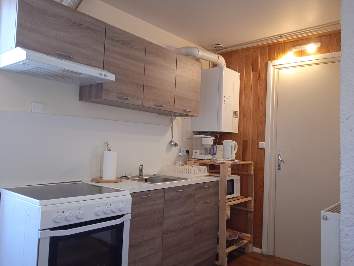 這是一套迷人的兩房空調公寓,步行 5 分鐘即可抵達阿爾比主教城的中心。 您將入住一套住宅公寓,包括: - 一間大臥室,配有一張 140/190 的床、一個雙人衣櫃(有足夠的空間放置嬰兒床,但不提供) - 設備齊全的小廚房:電磁爐、小冰箱、微波爐、咖啡機、 - 帶沙發床和電視的客廳, - 一間浴室和一個獨立的廁所(不提供毛巾), - 沒有 WIFI,抱歉 :)