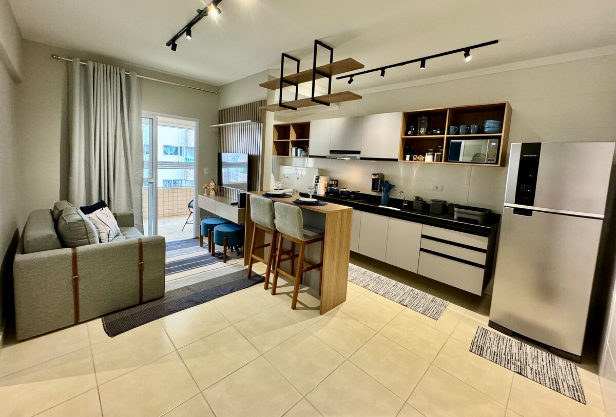 Localização privilegiada, há 250m da praia Aviação. Apartamento novo, limpo, e pensado com carinho para te receber! Além disso, todos os serviços essenciais e turísticos, como mercado, farmácias, bares, restaurantes, padarias, estão a um passo de distância. Será um prazer receber você e sua família! OFERECEMOS: SACADA COM CHURRASQUEIRA ELÉTRICA, 2 VAGAS NA GARAGEM, 2 ELEVADORES, 2 QUARTOS COM PROTEÇÃO DE TELA E VENTILADORES, LAVANDERIA , SALA DE ESTAR, COZINHA COMPLETA E 2 BANHEIROS (UM SUÍTE).