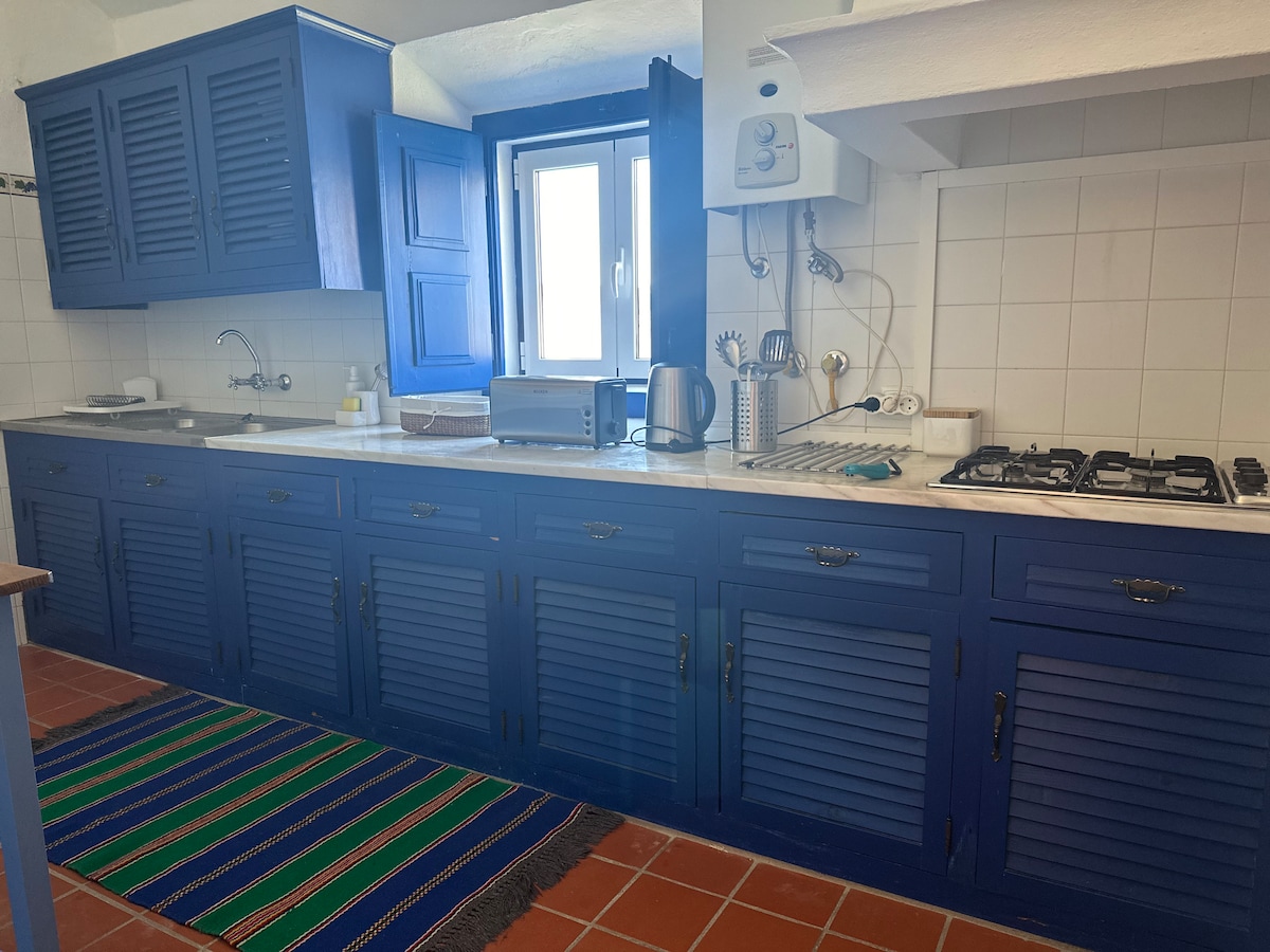 Quarto com duas camas individuais ideal para descansar aproveitando a beleza exterior. A sala é ampla e convida ao relax. A lareira tipicamente alentejana tem uma salamandra vintage de ferro fundido que aquece até à alma. O sofá cama pode ser usado se solicitado Tem casa de banho e cozinha.