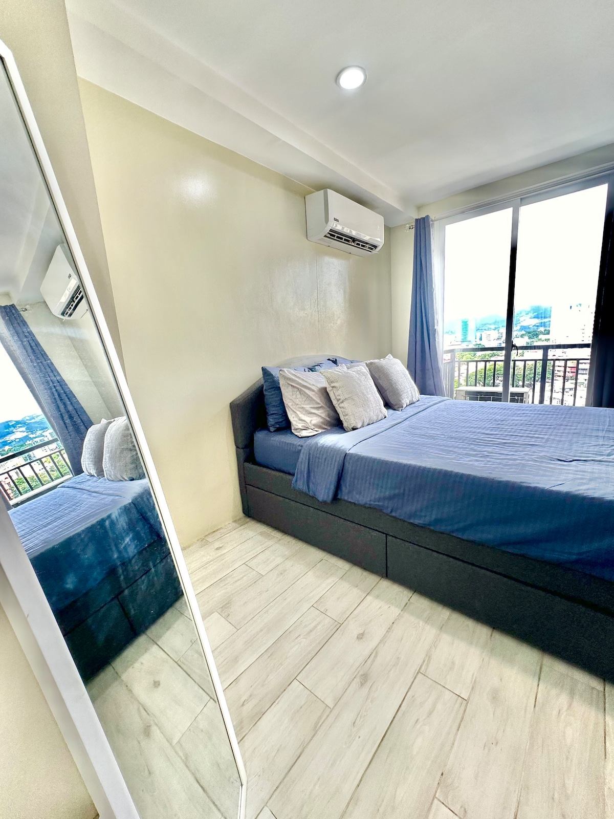 這套單間公寓擁有陽臺,可欣賞迷人的城市景觀,非常適合享受早晨的咖啡或夜晚放鬆。我們距離海濱飯店步行5分鐘,距離IT公園僅8-10分鐘,交通便利。15 分鐘內即可抵達道教寺廟、Leah 寺廟和宿務商業園區等熱門景點,30 分鐘內即可抵達麥克坦海灘。我們設備齊全的單間公寓提供溫馨的氛圍,確保您住得舒適。
