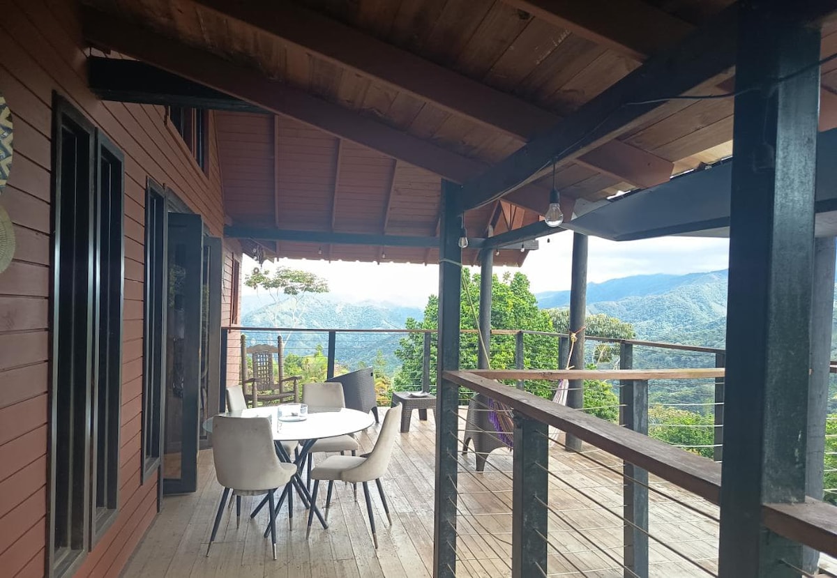 Hermosa cabaña con impresionante vista al Valle de Constanza. Esta publicación es para la estancia en la Cabaña grande con 4 habitaciones. Cada cabaña una brinda un espacio único y diferente, inspiradas en un estilo campestre, y acogedor. Favor notar que durante los meses de Enero-Marzo estaremos construyendo una terraza/piscina, por lo que habrá un espacio en el jardin en construcción.