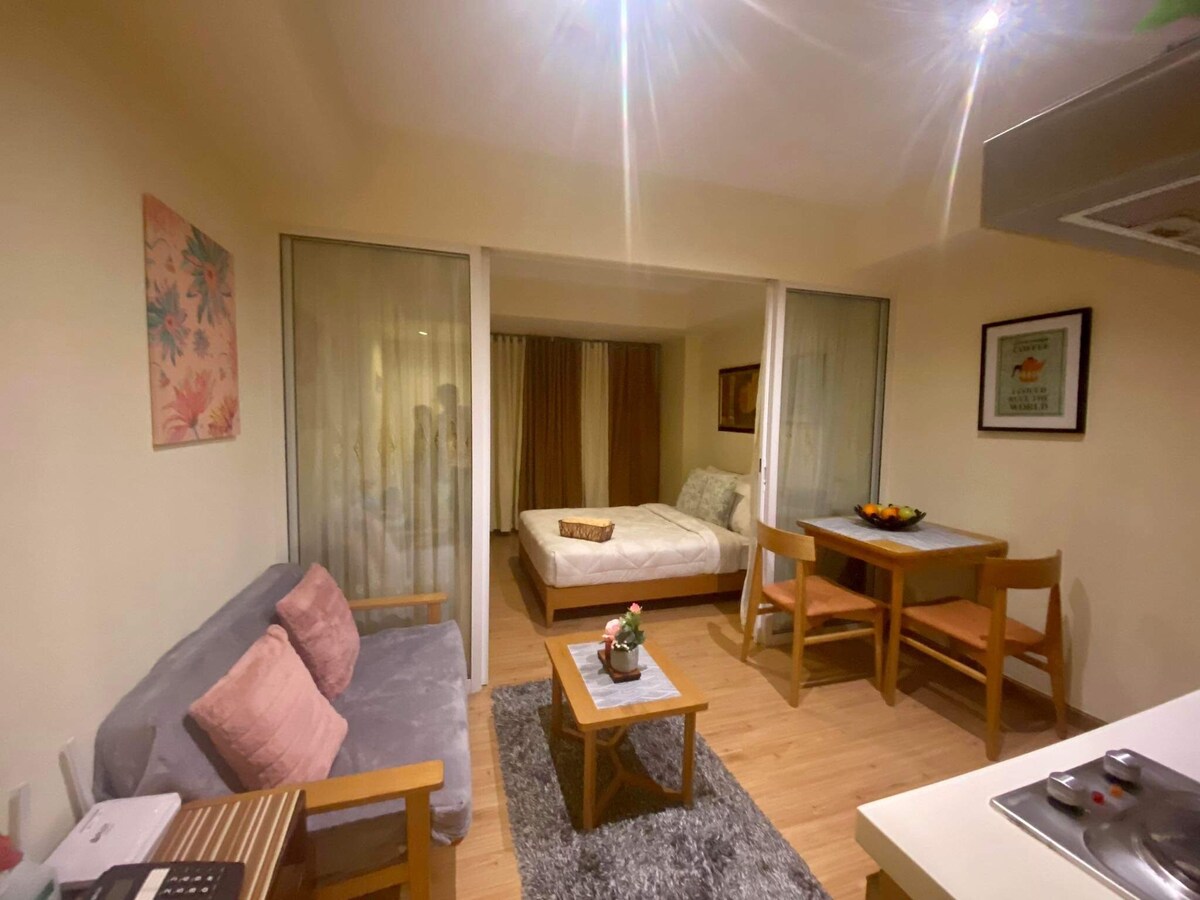 Relax with the whole family at this peaceful place to stay. 🏡 📍 Located inside a mid-rise condominium along Service Road, Campville, near Festival Mall VTEX (Alabang), FILINVEST Ideal for solo travelers, couples, or short stays. 🛏️ Studio Type Unit Includes: • Open-layout studio room • Bed, private toilet & bath • Air-conditioned • Wi-Fi available ✈️ NAIA Terminal 1/2/3 :15-17km 🚗 Accessible via East Service Road, with easy routes to NAIA, Makati, and BGC.
