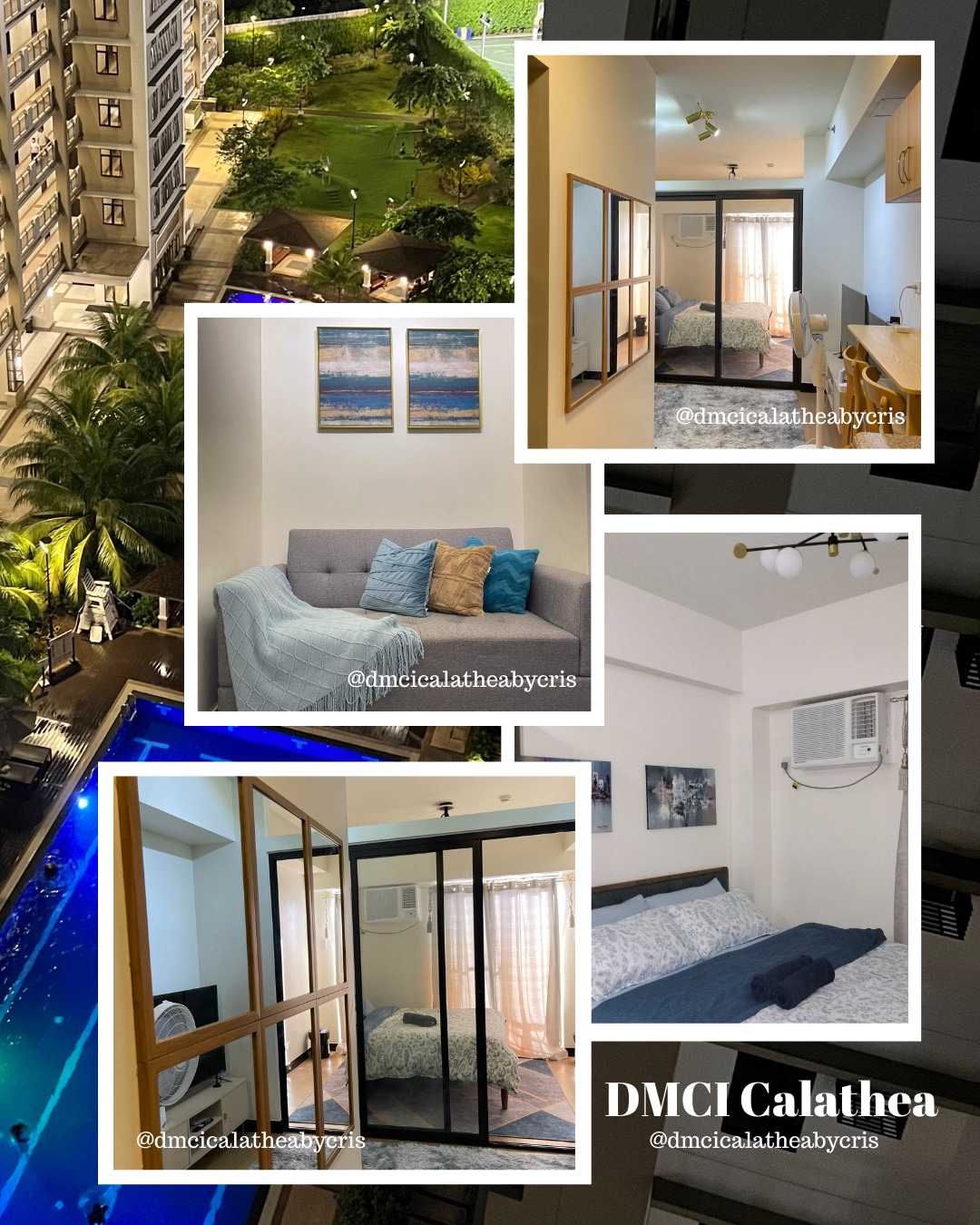 Simple and comfortable 1 bedroom 31 sqm apartment at Calathea Place. Located on the ground floor with a high ceiling and conveniently situated near the elevators for easy access to the basement where most amenities (parking, laundry, convenience store, gym, & roof deck) are. Enjoy a ‘resort-feel’ atmosphere with the unit’s high quality furnitures and appliances, and patio facing the pools and beautiful greenery.