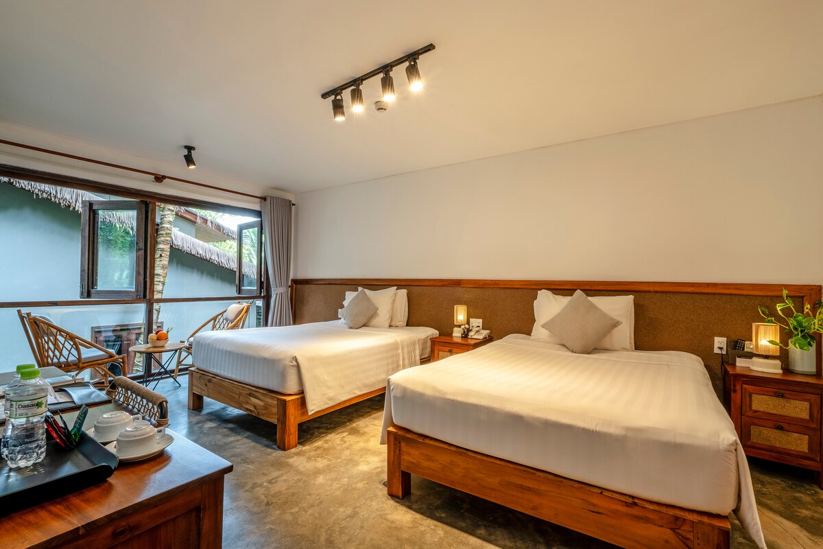 Each cabin is designed with large windows offering panoramic ocean views. Equipped with air conditioning and a comprehensive set of amenities, our cabins provide guests with the utmost comfort, ensuring a private and enjoyable experience during their cruise.Tận hưởng khung cảnh đáng yêu của địa điểm lãng mạn nằm giữa thiên nhiên này.