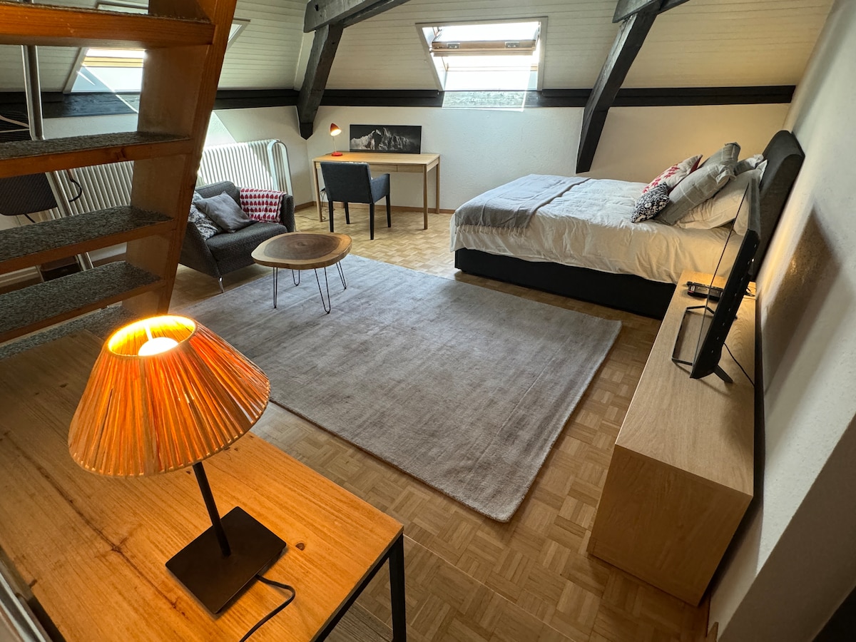 Enjoy Geneva like a local in this freshly renovated designer studio in the vibrant heart of Eaux-Vives, steps from the Jet d'Eau. Run by the lake, and the parc, walk to boutiques, cafes, theaters and cinemas, and relax in style with a full kitchen, brand-new bathroom, fast Wi-Fi, and a comfortable sofa bed with quality mattress. On a vibrant street with wine bars and a Michelin-starred restaurant, close to public transport and Geneva iconic events like l'Escalade, Bol d'Or and the Marathon.