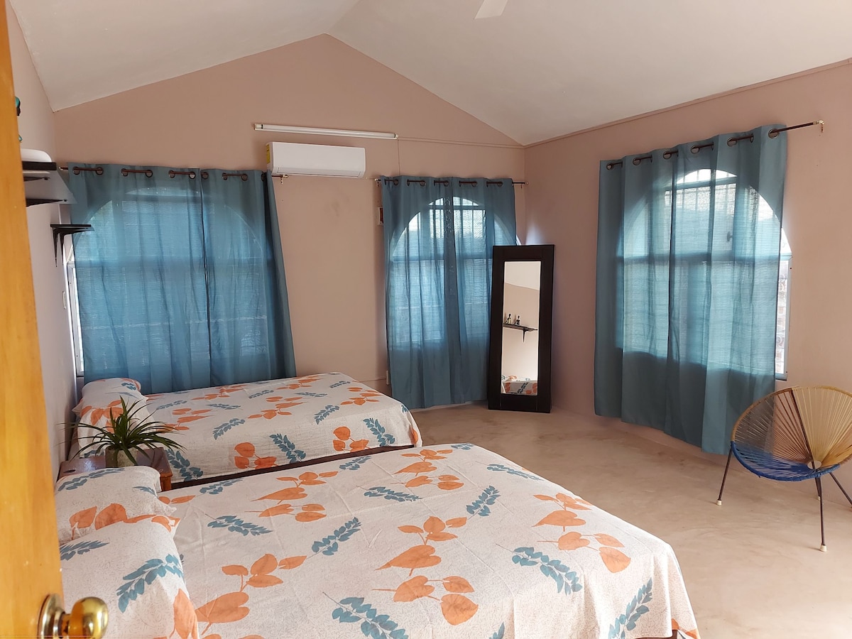 舒適的漂亮房間,提供所有必要的服務,讓您享受溫馨的住宿體驗。配有 1 張加大雙人床、1 張單人床、空調、天花板風扇、可收看 Netflix、HBO、Prime Video 的智慧電視、迷你吧、咖啡機與咖啡豆、WiFi、獨立浴室。 距離潟湖只有 3 個街區,距離市場 1 個街區,距離市中心 3 個街區。 我們有 3 輛自行車包含在房間價格中,並且有全套共用廚房。